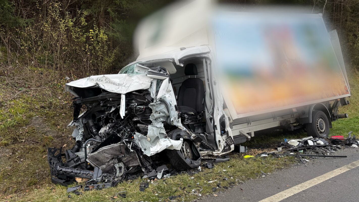 Die Fahrerin des Transporters hatte Backwaren auszuliefern. Sie wurde in ihrem Fahrzeug eingeklemmt und musste von der Feuerwehr befreit werden.
