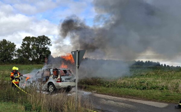 Auto auf der B 462 bei Dunningen im Vollbrand – Feuerwehr im Einsatz