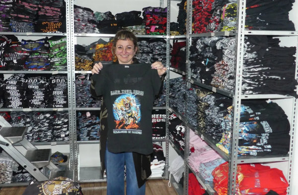 Ein kleiner Lagerraum im Gewerbepark H.A.U., Stahlregale an den Wänden. Dazwischen Kisten und Schachteln. Vollgestopft mit überwiegend schwarzen T-Shirts, Hoodies und anderen Klamotten. Schramberg. „Wir haben den gesamten Nachlass von…