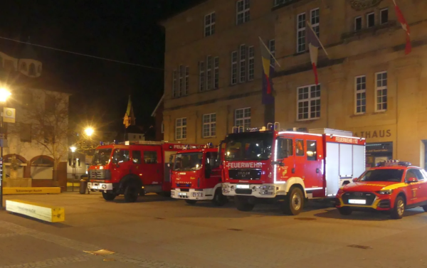 Was war da gestern Abend los? Auf dem Rathausplatz stehen fünf Feuerwehrfahrzeuge ordentlich nebeneinander aufgereiht. in der Hauptstraße parken die Drehleiter und weitere Einsatzfahrzeuge – aber weit und breit kein…