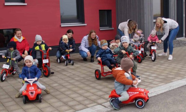 Jetzt hat die neue Waldmössinger Kindertagesstätte „W-Ki“ sogar einen eigenen Fuhrpark: Im Namen des Fördervereins W-Ki übergab die Vorsitzende Karin Eichenlaub 14 rote Flitzer an die Leiterin der Einrichtung, Jennifer…