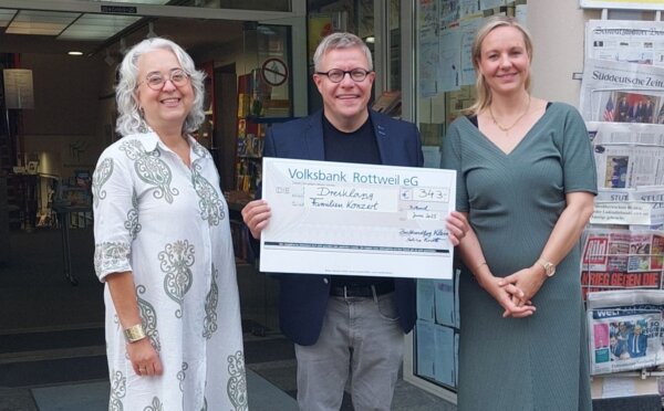 Bereits zum zweiten Mal übergab Sabina Kratt von der Buchhandlung Klein einen Spendenbetrag für ein Kinderkonzert im Rahmen der Rottweiler Dreiklangkonzerte. Rottweil – Nach dem Ende des regulären Kalendergeschäfts der…