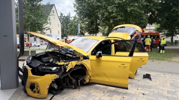 E-SUV fährt auf Gebäude in Rottweil: Fußgänger schwerst verletzt