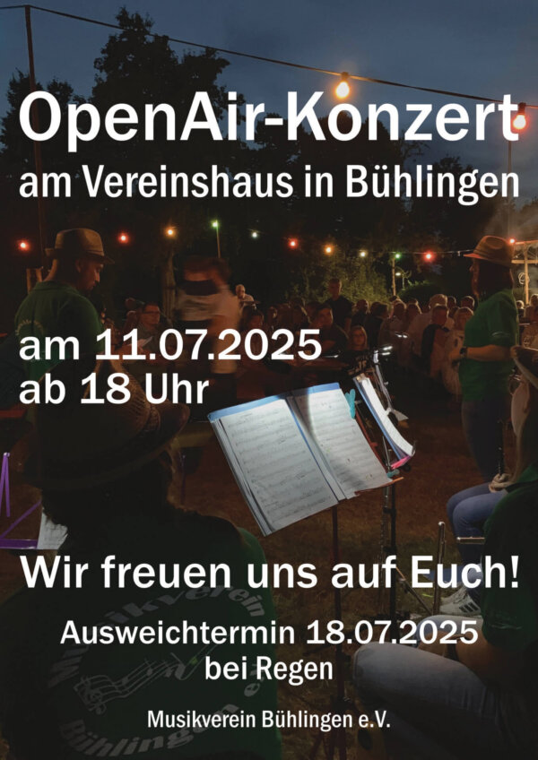 Der Musikverein Bühlingen e.V. lädt am 11. Juli 2025 ab 18 Uhr zum Open-Air-Konzert am Vereinshaus in Bühlingen ein. „Euch erwartet ein abwechslungsreiches Programm mit traditionellen Märschen, Polkas und moderner…