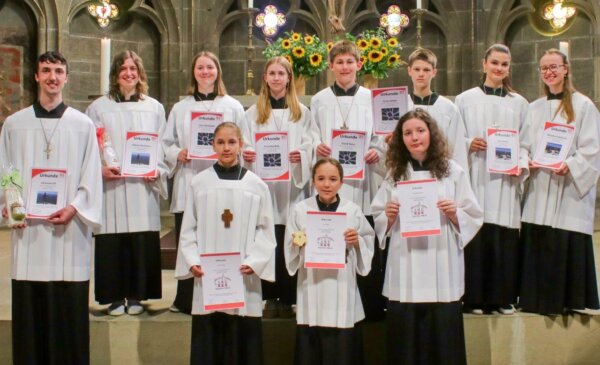 Beim Gottesdienst anlässlich des Gemeindefestes von Heilig-Kreuz konnten zahlreiche Ministranten für ihre langjährige Zugehörigkeit zur Ministrantenschar am Münster geehrt werden. Rottweil – Pfarrer Timo Weber bedankte sich bei allen Ministranten…