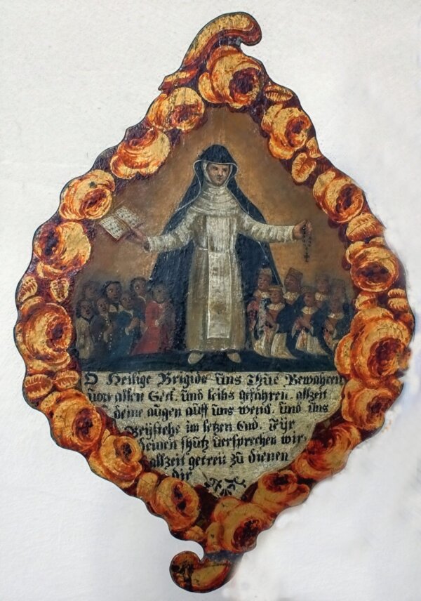 Brigida war um 500 Äbtissin in Irland. Die Verehrung der Heiligen begann in Neukirch wahrscheinlich um das Jahr 1600. Erhalten ist ein Brigidenschild aus dieser Zeit. Das bemalte Metallschild stellt…