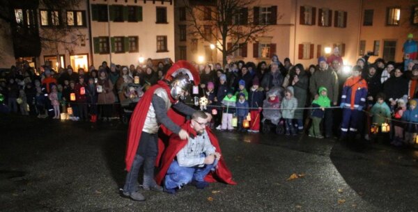 Es war dunkel, nass und kalt und trotzdem standen weit mehr als hundert Kinder mit ihren Eltern und Großeltern im Kreis auf dem Platz vor dem Südportal des Rottweiler Heilig-Kreuz…