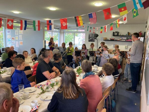 Gemeinsam feierten am Dienstag rund 30 Erwachsene und 20 Kinder und Jugendliche am Hegneberg bei genüsslichen, interkulturellen Speisen und tollen musikalischen Darbietungen der Bläser der Eichendorffschule sowie dem Ensemble der…