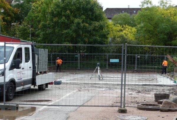 An der Berneckschule tut sich was. Auf dem Gehweg vor der Schule hat die Stadt den Rad- und den Gehweg gesperrt, auf dem Gelände des früheren Lehrerparkplatzes sind Mitarbeiter der…