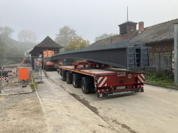 Brückenträger für Neubau an der Schindelbrücke eingehoben