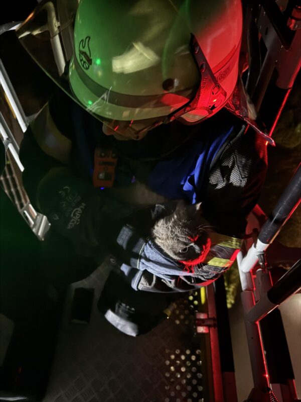 Die Katze vom Dach – Feuerwehr rettet verängstigte Katze von Hausdach