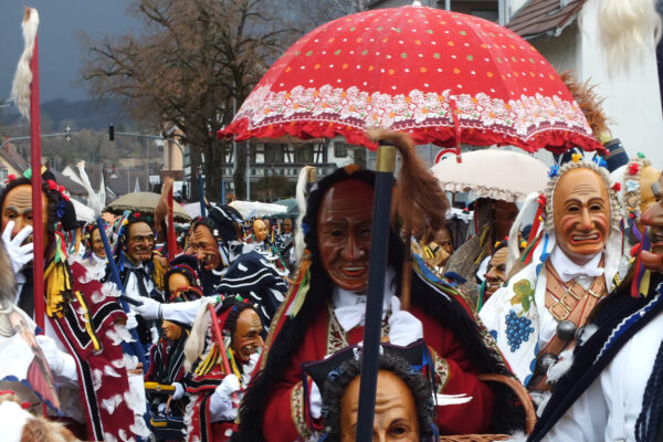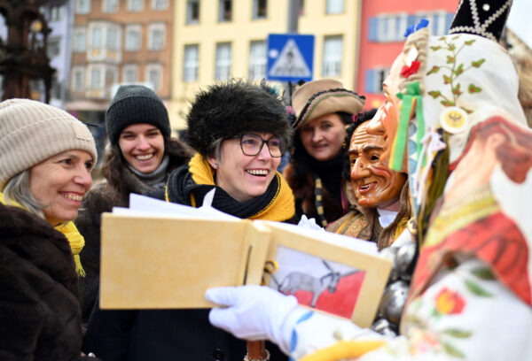 Fasnetsmontag-Narrensprung in Rottweil: Farbenfroh mit Sonnenstrahlen