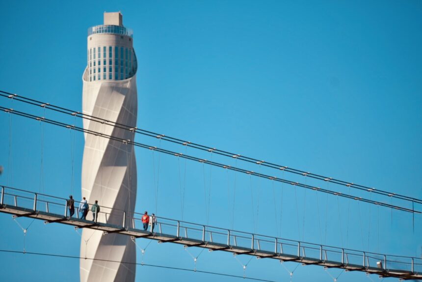 Rottweil – Leicht wirkt sie, fast schwebend spannt sich die Fußgänger-Hängebrücke Neckarline durch den Raum. Im Hintergrund: der markante Testturm, dessen gedrehte Silhouette längst zum Wahrzeichen der Stadt geworden ist.…