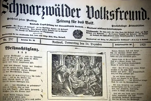 An Weihnachten 1925 war in Rottweil und der Region von den später sprichwörtlichen „goldenen Zwanzigerjahren“ noch nichts zu spüren. Zwar herrschten frühlingshafte Temperaturen, die Stimmung aber war frostig. Das zeigt…