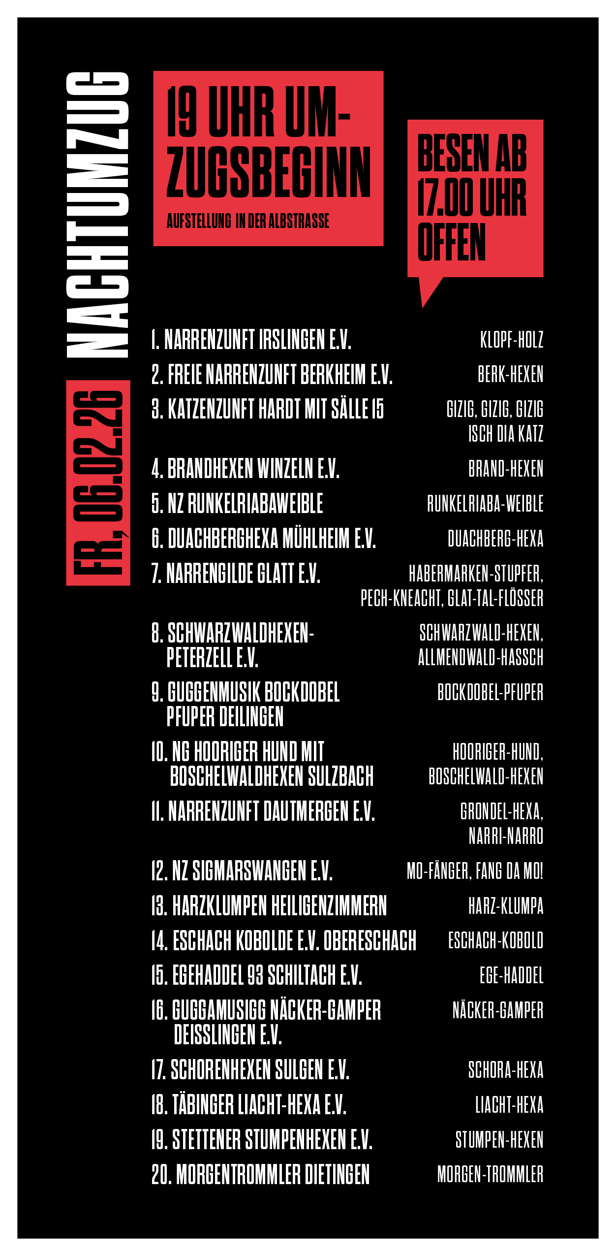 Die Narrenzunft Irslingen verweist auf ihrer Internetseite bereits auf die beiden Veranstaltungstage und kündigt ein dichtes Programm an, das den ganzen Ort in Fasnetsstimmung versetzen soll. Für einen reibungslosen Ablauf sorgen neben den Zünften und Garden auch die örtlichen Helferinnen und Helfer, die sich um Bewirtung und Organisation kümmern und damit zum Gelingen des Wochenendes beitragen.