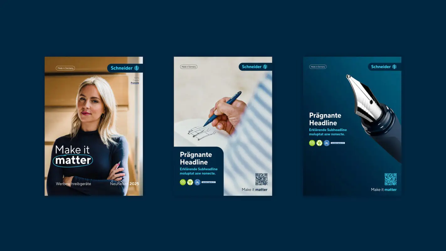 „Unser Ziel war es, die Marke Schneider so weiterzuentwickeln, dass sie unsere Kernwerte authentisch transportiert und gleichzeitig den Anforderungen einer digitalen Welt gerecht wird“, erklärt Christian Schneider, Geschäftsführer von Schneider. Die Auszeichnung mit dem German Design Award bestätigt, dass Schneider diesen Weg erfolgreich eingeschlagen hat. Im Mittelpunkt steht heute nicht mehr allein die Funktion des Schreibgeräts, sondern die emotionale Bedeutung, die durch das geschriebene Wort entsteht. Dieser Gedanke der Bedeutsamkeit prägt den neuen Markenauftritt und zieht sich als Leitmotiv „Make it matter“ durch alle Kommunikationskanäle.