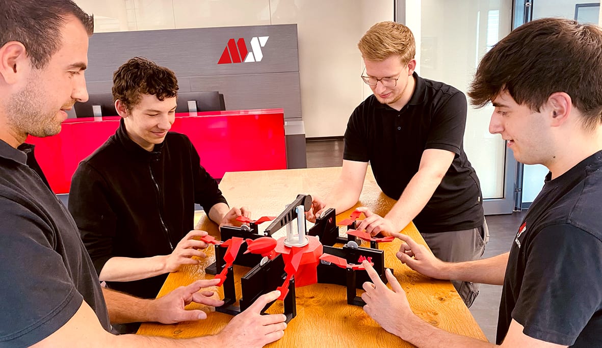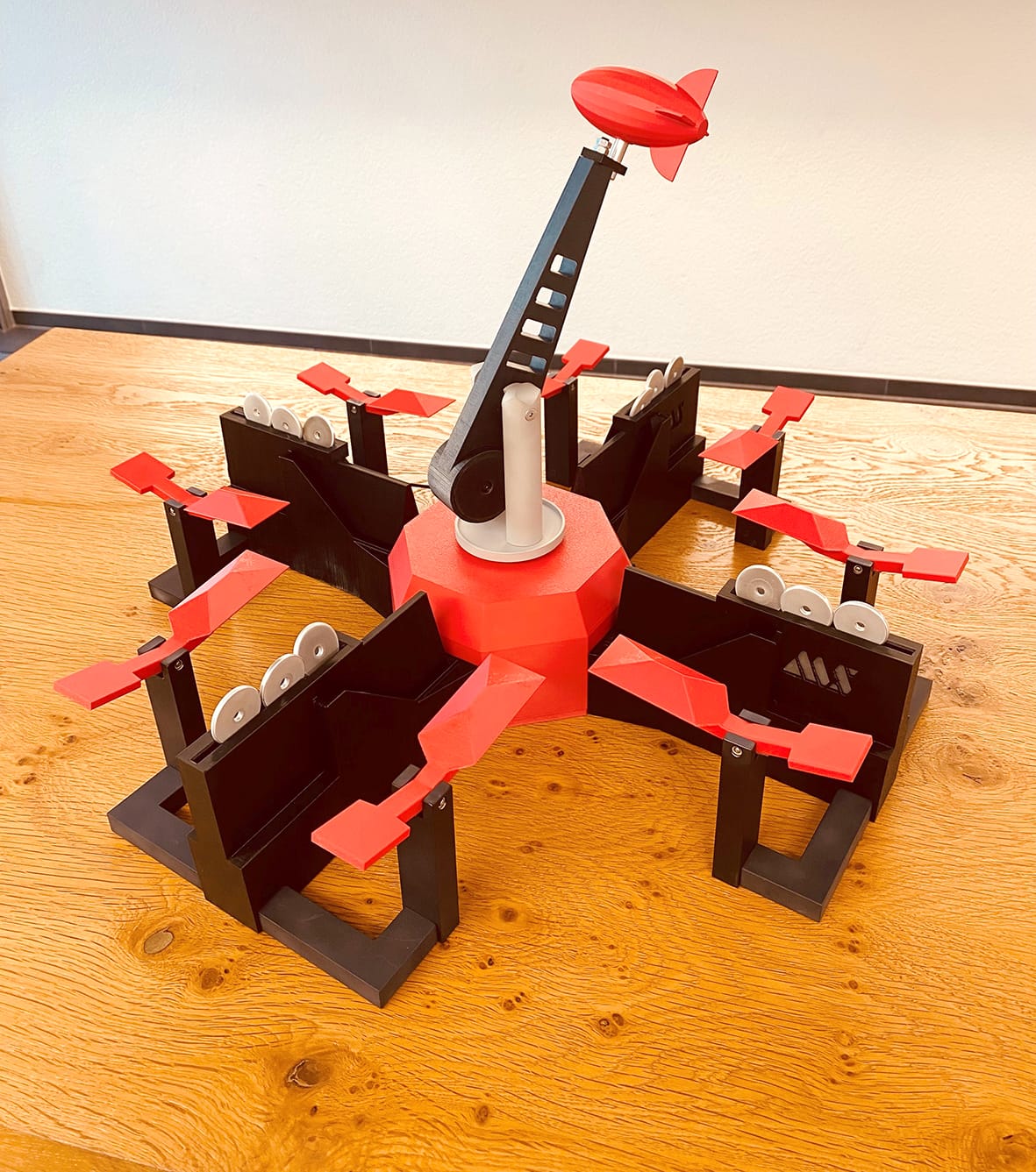 Die Initialzündung kam kurz vor dem Weihnachtsurlaub – und das nicht ganz alltäglich: Auf Grundlage des Spiels „Looping Louie“ entstand gemeinsam mit Ausbildungsleiter Manuel Schneider die Idee zu einem außergewöhnlichen Projekt, das die Grenzen des klassischen Schülerpraktikums sprengte. Eine Projektgruppe wurde ins Leben gerufen, in dieser erhielten die Azubis von MS-Schramberg freie Hand bei der Gestaltung, Umsetzung und Auswahl der Fertigungsarten. Unterstützt wurden sie von den Praktikanten, die schnell tiefer in die technischen Abläufe einstiegen, als es bei einem klassischen Schülerpraktikum üblich ist.