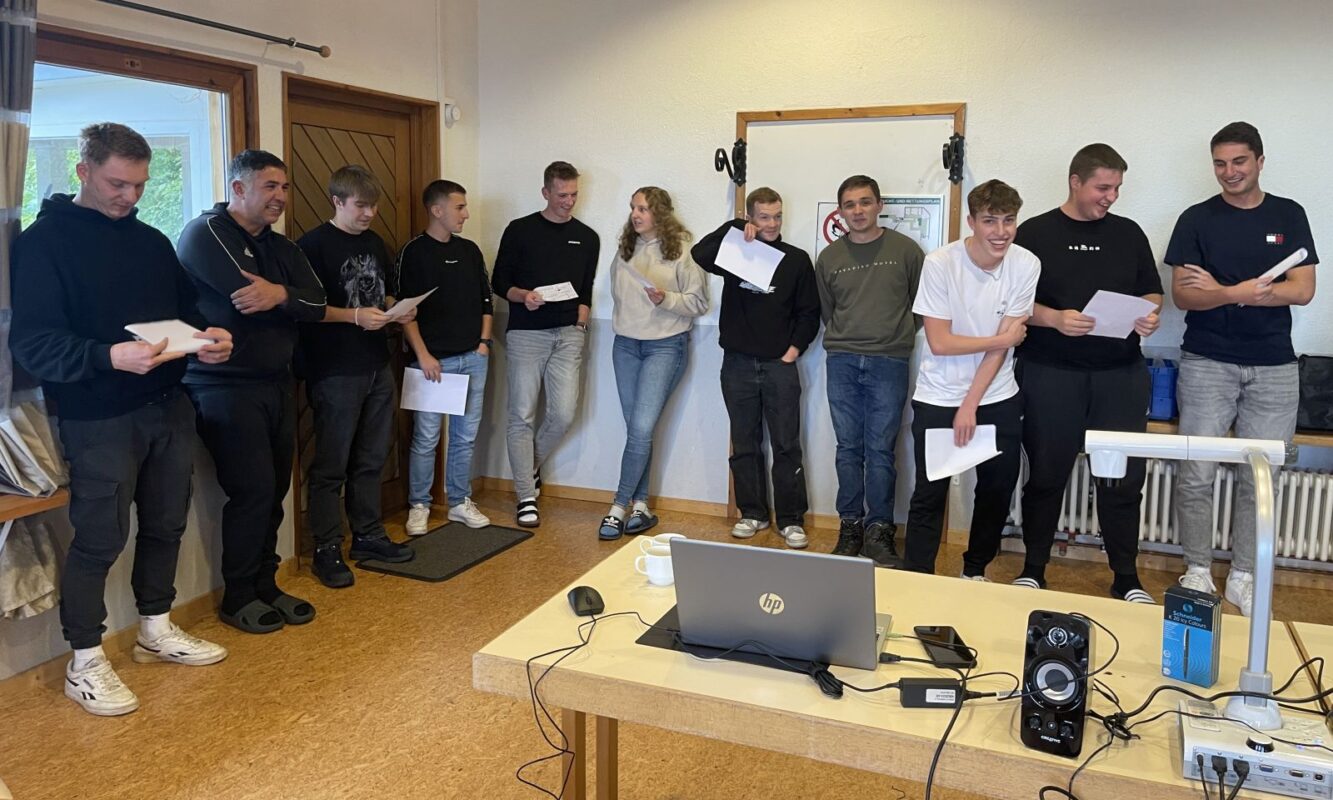 Nach der gemeinsamen Wanderung zur Altenburg und dem Bezug der Zimmer stand das gegenseitige Kennenlernen im Mittelpunkt. Bei einer kreativen Steckbriefaktion lernten sich die beiden ersten Klassen der Technikerschule spielerisch kennen – mit viel Lachen, Neugier und Offenheit. Anschließend stellte Uwe Walter in einem Vortrag die Techniker-Übungsfirma (TÜF) vor – ein zentrales Element der Ausbildung, das praxisnahes Arbeiten in Projekten ermöglicht.