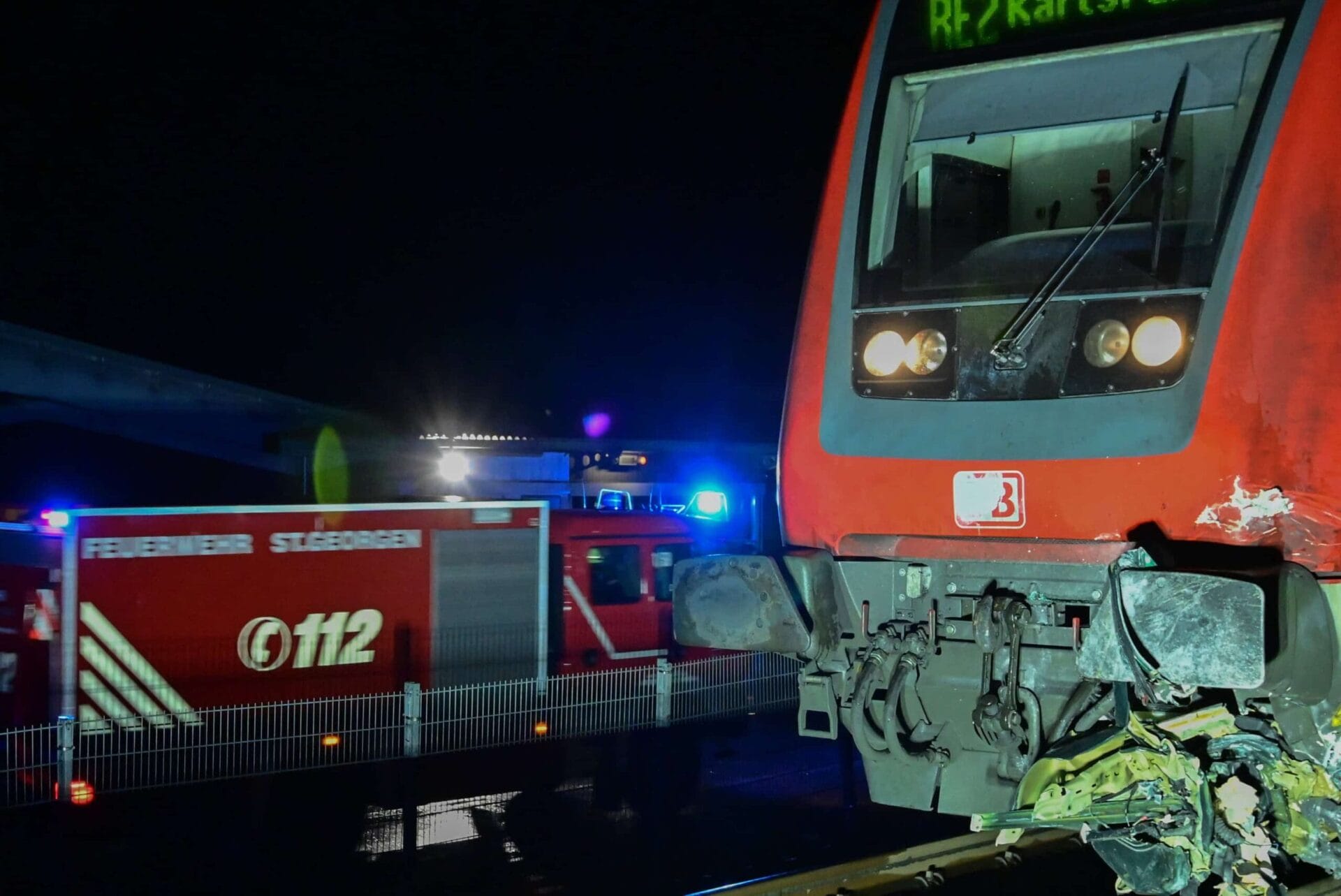 Ein Interregio ist am Samstagabend gegen 18 Uhr auf der Schwarzwaldbahnstrecke Konstanz – Offenburg bei St. Georgen in ein auf einem Bahnübergang stehendes Auto geprallt. Das Fahrzeug wurde völlig zerstört. Der Zug selbst kam nach etwa 300 Metern zum Stehen. Wie inzwischen bekannt wurde: In dem Auto befand sich zunächst neben der Fahrerin auch ihr einjähriges Kind.