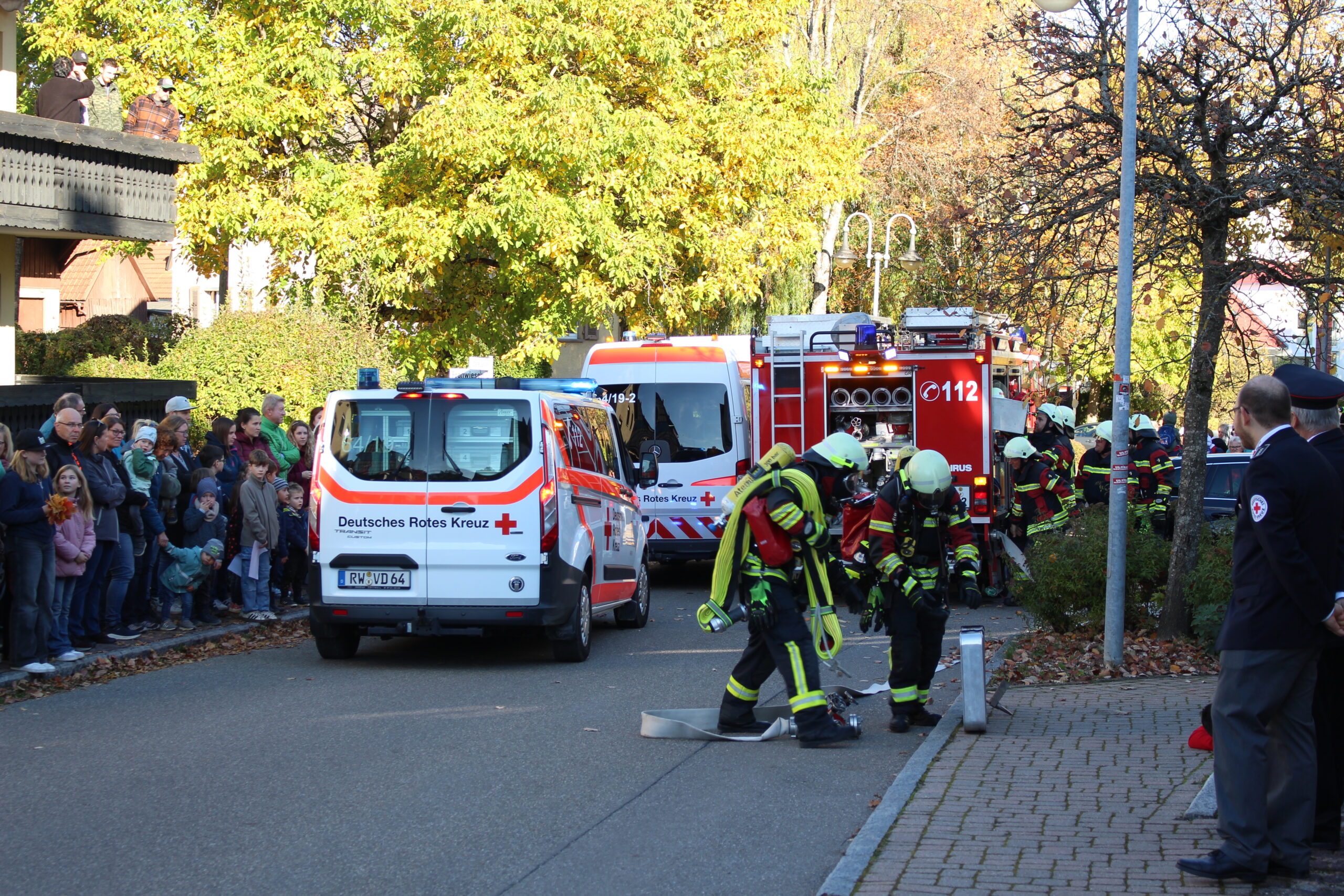 Am Samstagnachmittag, 18. Oktober 2025, fand die diesjährige Hauptübung der Freiwilligen Feuerwehr Villingendorf gemeinsam mit dem Deutschen Roten Kreuz (DRK) Villingendorf und dem Jugendrotkreuz (JRK) statt. Zahlreiche interessierte Bürgerinnen und Bürger verfolgten ab 16 Uhr die eindrucksvolle Schauübung am Übungsobjekt Neuer Kindergarten in der Oberen Gasse“ bei herrlichem Herbstwetter