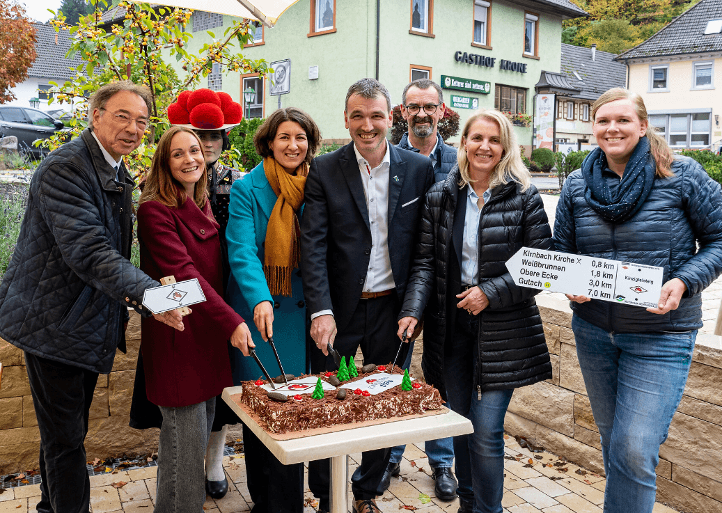 Ein besonderer Höhepunkt der Auftaktveranstaltung war das symbolische Anschneiden eines Kuchens mit dem Logo des Kinzigtalsteigs – eine süße Premiere für ein neues Wandererlebnis.