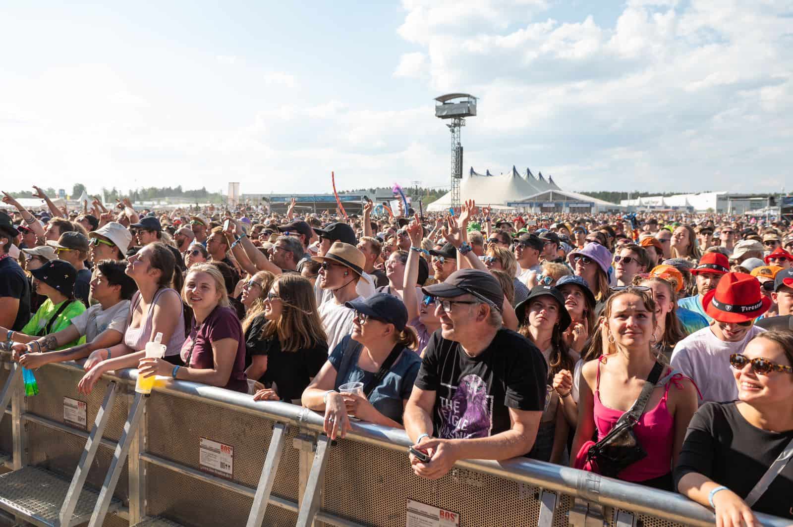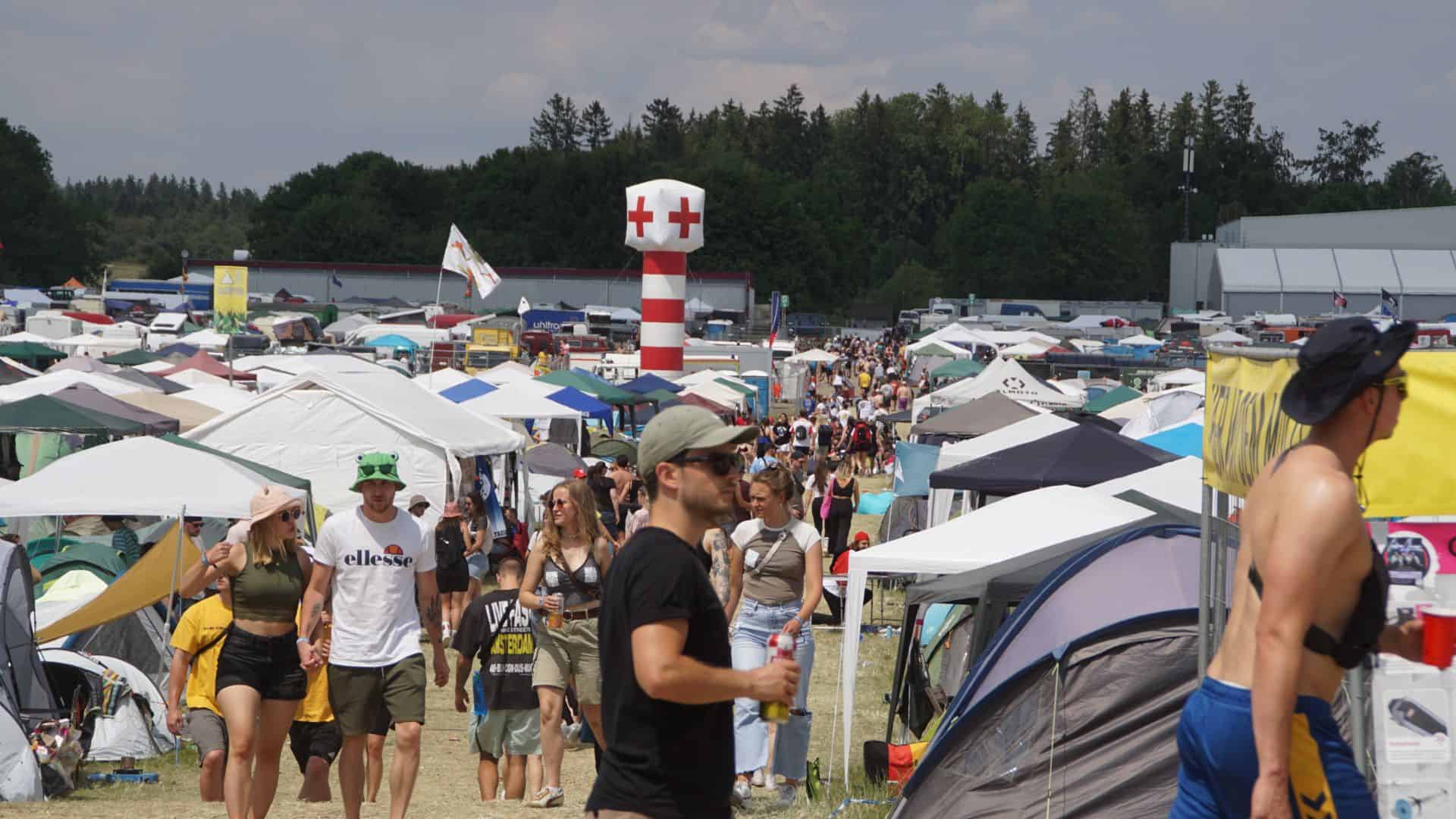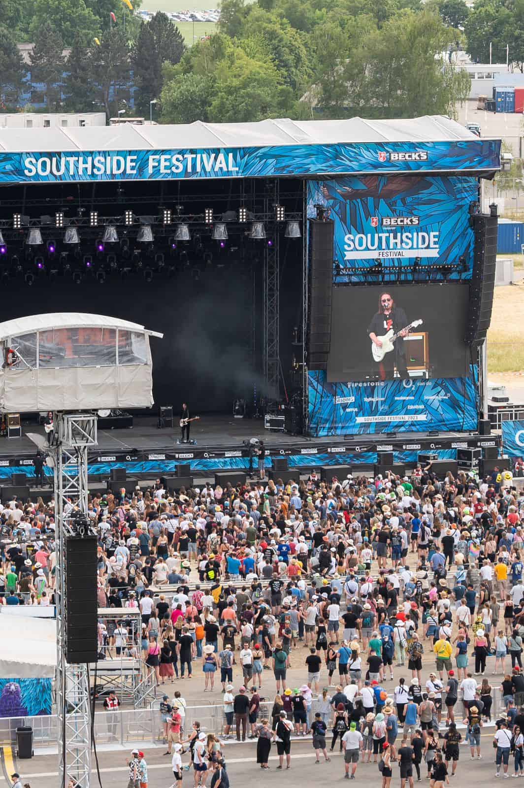 Um 15 Uhr am Freitag hat das Festival in Neuhausen ob Eck im Kreis Tuttlingen richtig begonnen. Die Fans waren da, die Bühnen wurden bespielt. Begonnen haben The Amazons auf der Green Stage und zeitgleich Akne Kid Joe auf der Red Stage. Vier Bühnen gibt es auf dem Festivalgelände insgesamt, von denen aus oft gleichzeitig eingeheizt wird. 65.000 Menschen werden zu diesem Southside des Jahres 2023 erwartet. Zahlreiche waren bereits am Freitagnachmittag da und hatten sichtlich ihren Spaß oder waren schon im Open-Air-Groove mit Wandergitarre, Limoflasche oder Bierdose. Der Deutsche Wetterdienst hat grünes Licht gegeben: Sonne satt.
