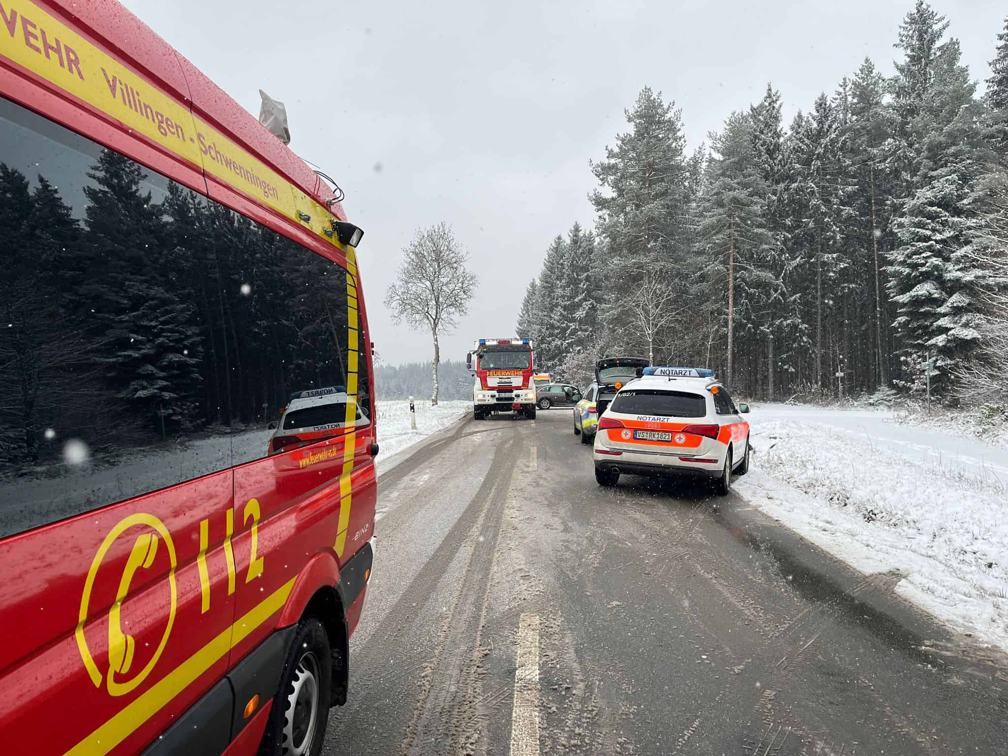 Der Unfall hatte sich tatsächlich bei Mönchweiler ereignet. Zwei Fahrzeuge stießen aus unbekannter Ursache auf winterlicher Straße zusammen. Vier Menschen sind verletzt worden, hieß es vor Ort. Zur Versorgung eines der Verletzten war nach ersten Informationen auch der Rettungshubschrauber Christoph 11 an die Einsatzstelle alarmiert worden.