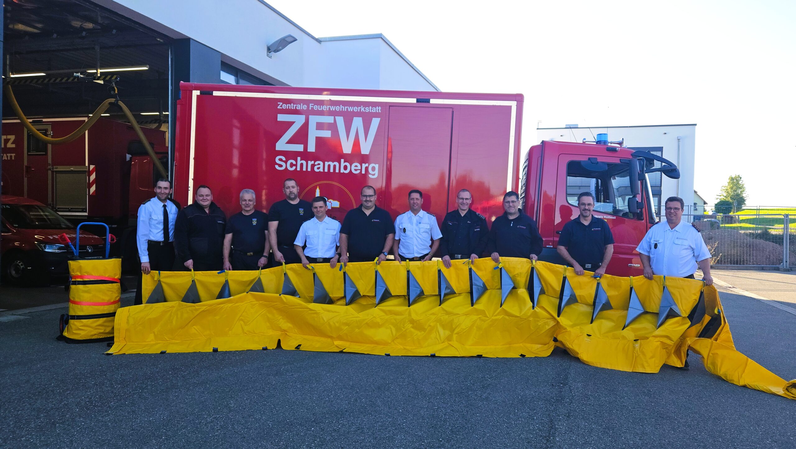 Mehr Sicherheit für die Menschen im Landkreis Rottweil: Acht Feuerwehren im Kreis haben jetzt erstmals Watergates beschafft – flexible mobile Hochwasserschutzsysteme, die sich schnell und unkompliziert einsetzen lassen. Insgesamt wurden 21 Stück angeschafft, federführend organisiert über den Landkreis durch den stellvertretenden Kreisbrandmeister Markus Fehrenbacher.