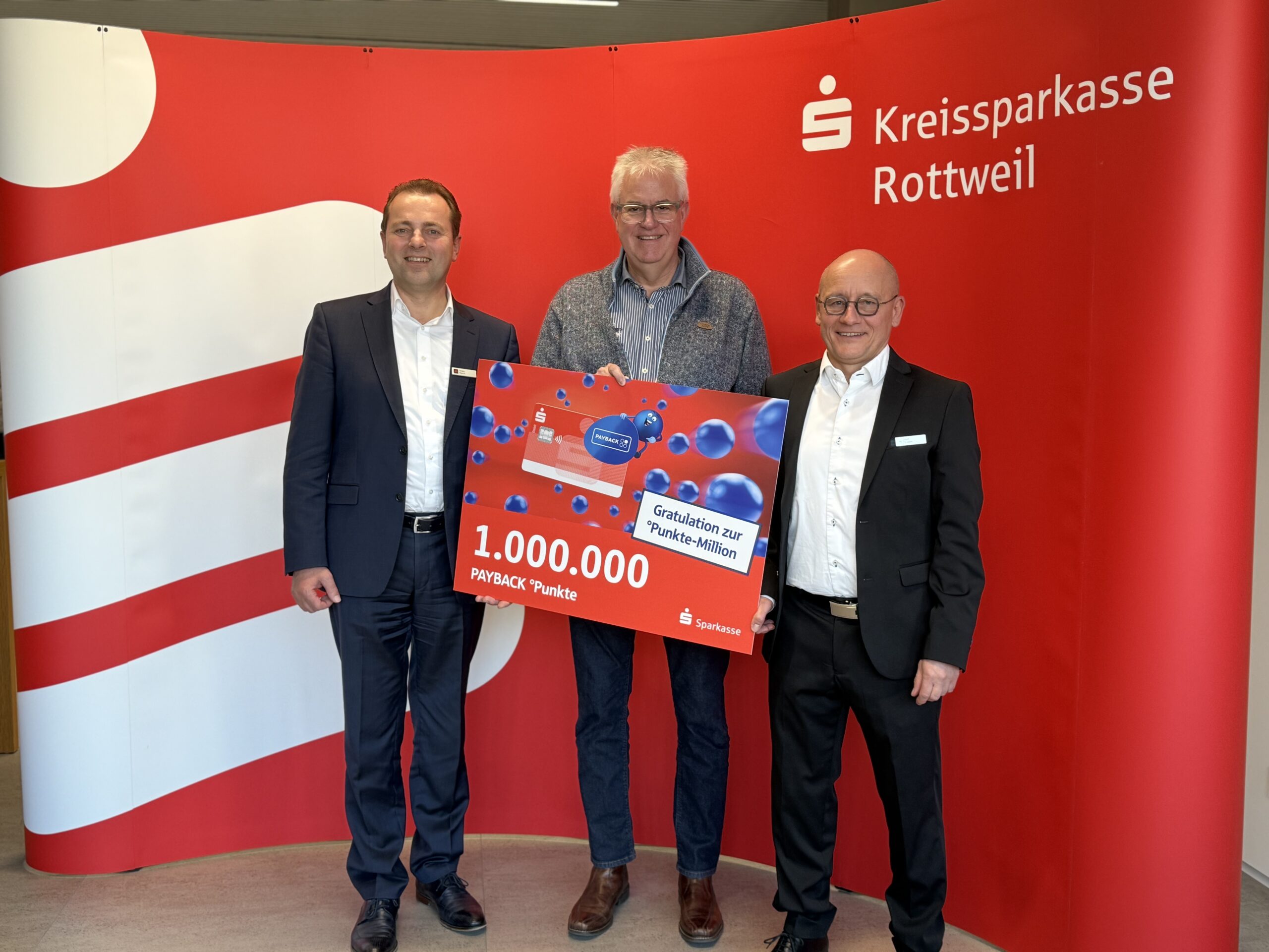 Grund zum Jubeln bei der Kreissparkasse Rottweil: Karsten Hansmann ist Punkte-Millionär. Damit zählt er zu den glücklichen Gewinnern…