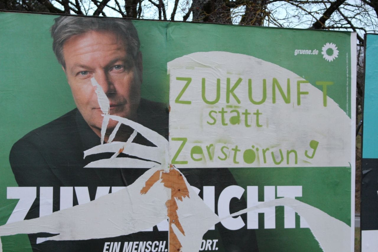 Zerstörte Wahlplakate gehören leider inzwischen schon fast zur Normalität, und in diesem ziemlich komprimierten Wahlkampf trifft es ganz besonders die Plakate der Grünen.