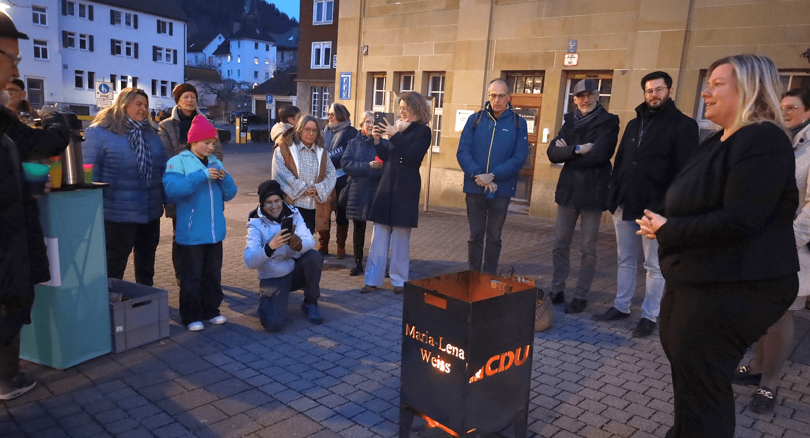 Mit dem für den Winterwahlkampf entwickelten Format „Politik an der Feuerschale“ hat die Bundestagsabgeordnete Dr. Maria-Lena Weiss einen wahren Hit gelandet. „Es müssen gar nicht immer große Veranstaltungen sein“, sagte die CDU-Politikerin auf dem Rathausplatz in Schramberg laut einer CDU-Pressemitteilung, „vielmehr bietet es sich an, rund um die eigens für das Event hergestellte Feuerschale und bei besonderer Atmosphäre und mit Glühwein und Punsch miteinander ins Gespräch zu kommen.“