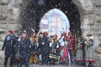 Fasnetsdienstag-Morgen in Rottweil: nur kurz kommt Schnee