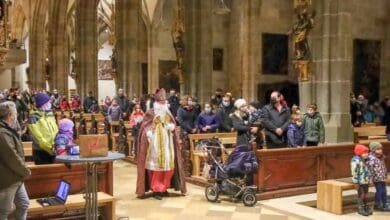 Nikolaus kommt zu den Kindern ins Heilig-Kreuz Münster