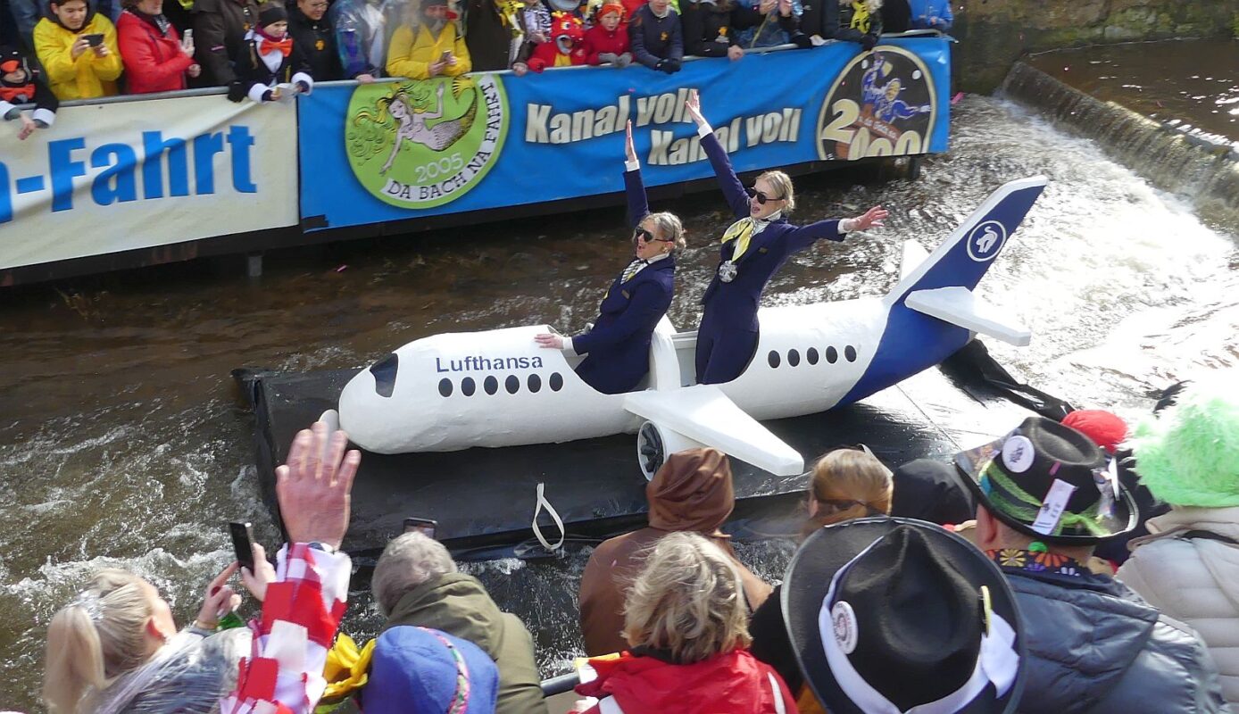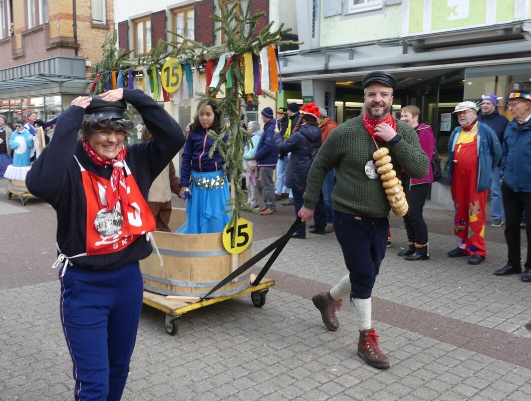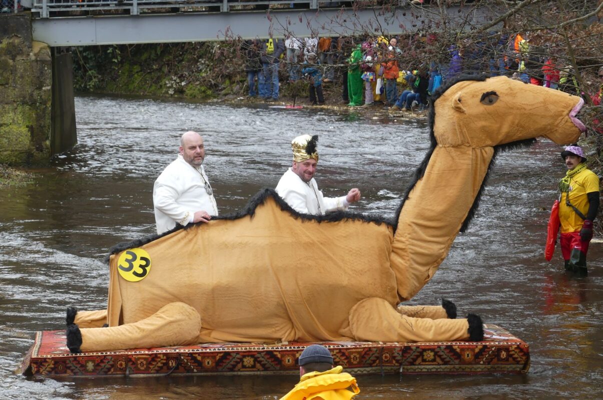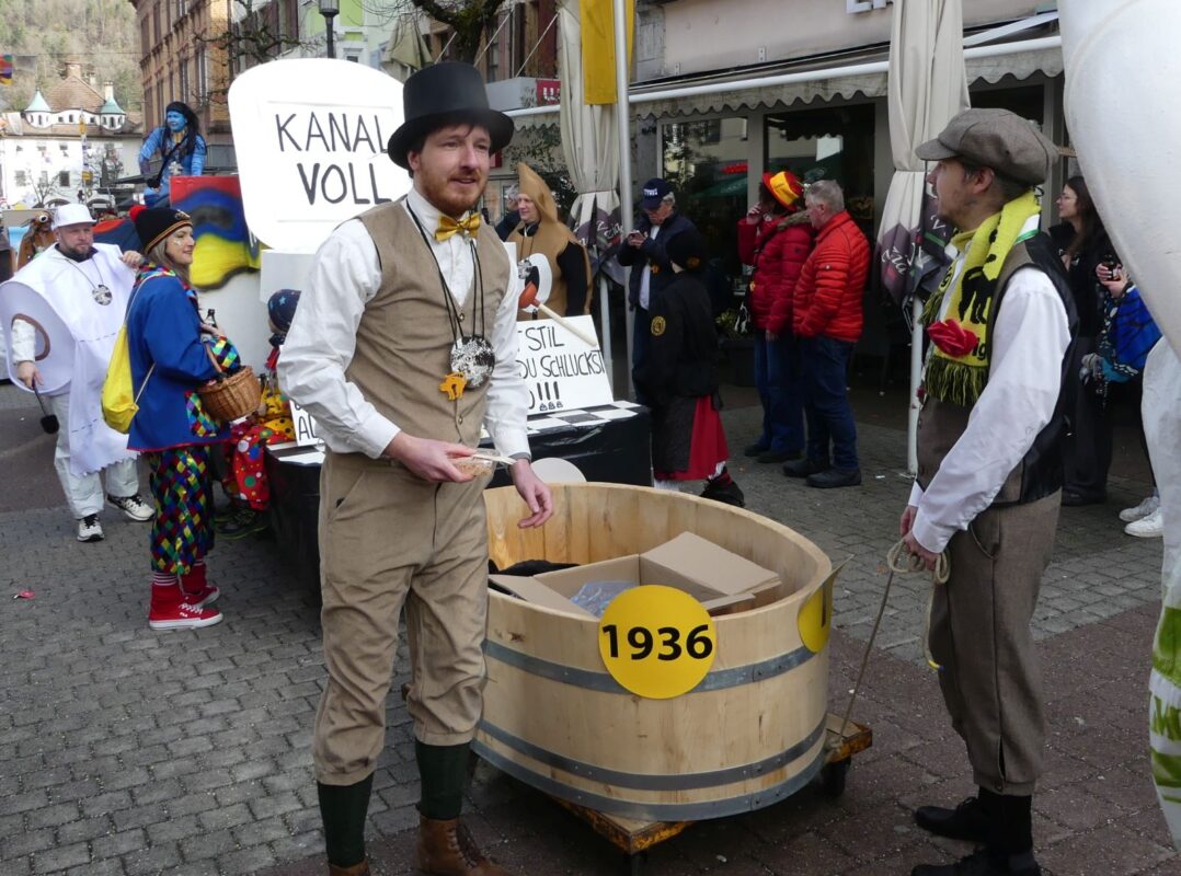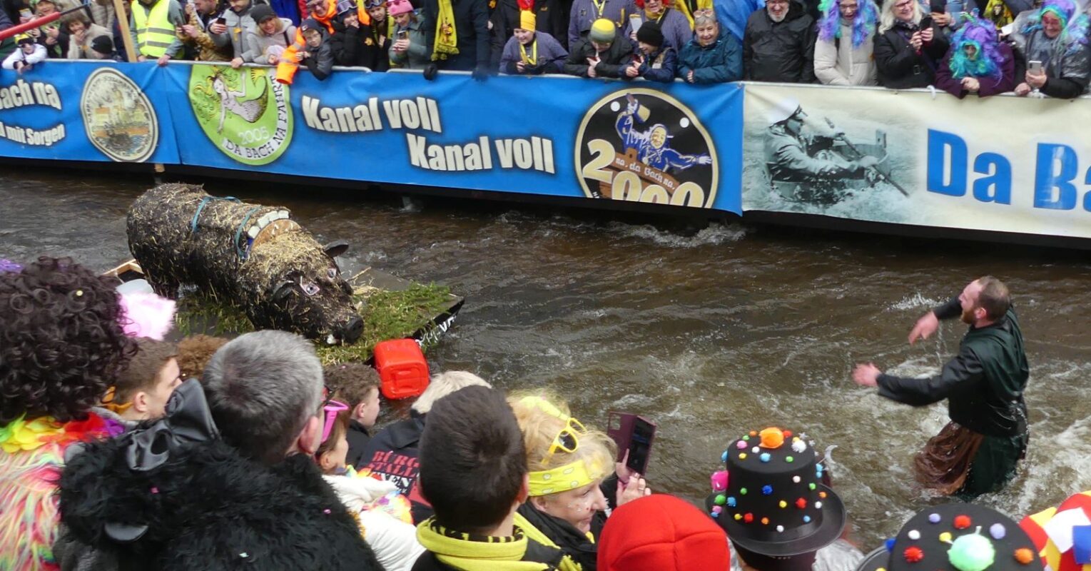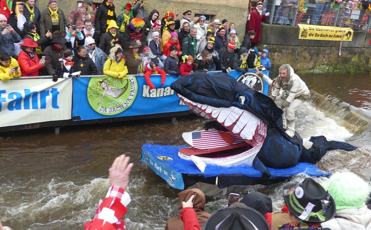 Vor dem eigentlichen Ereignis findet der Zuberumzug statt. Da sind die Zuber alle noch heil. In diesem Jahr gab es auch eine Reihe historischer Zuber, um an die 90-jährige Geschichte der Da-Bach-na-Fahrt zu erinnern.