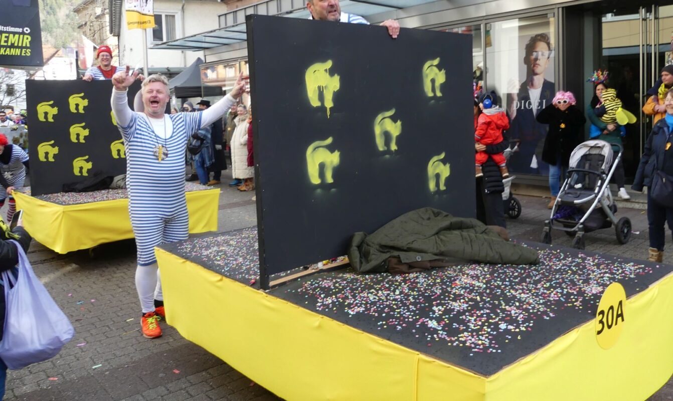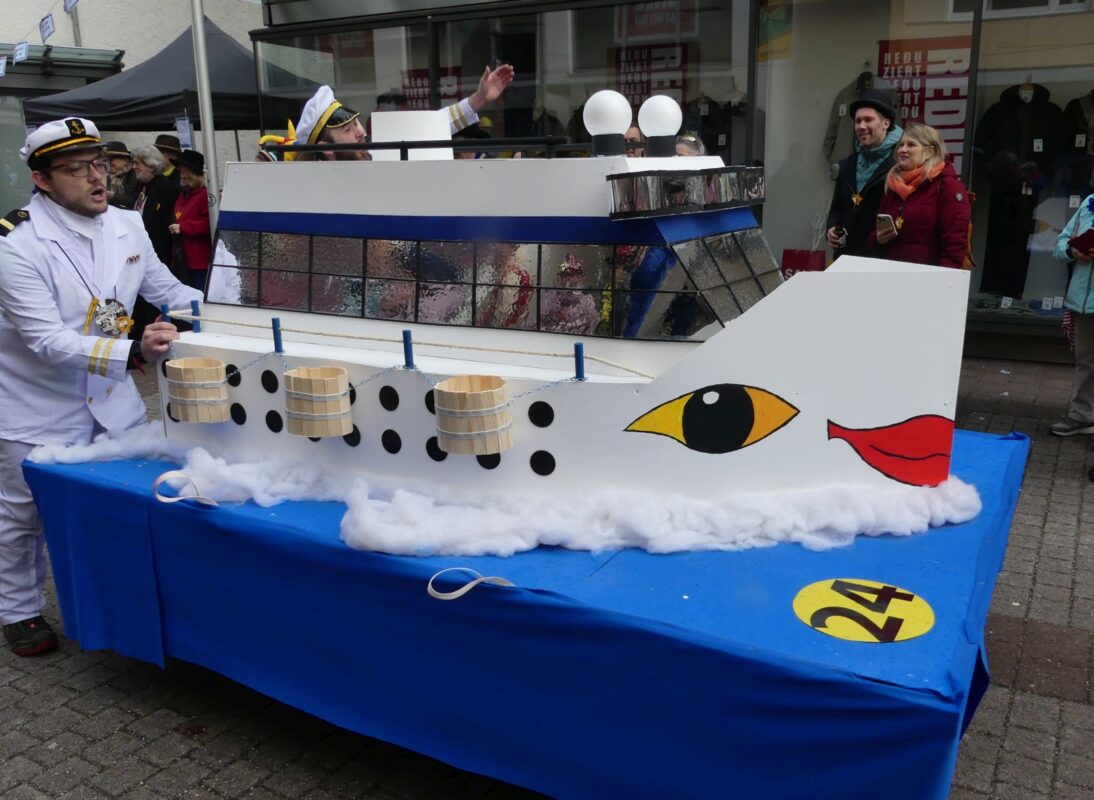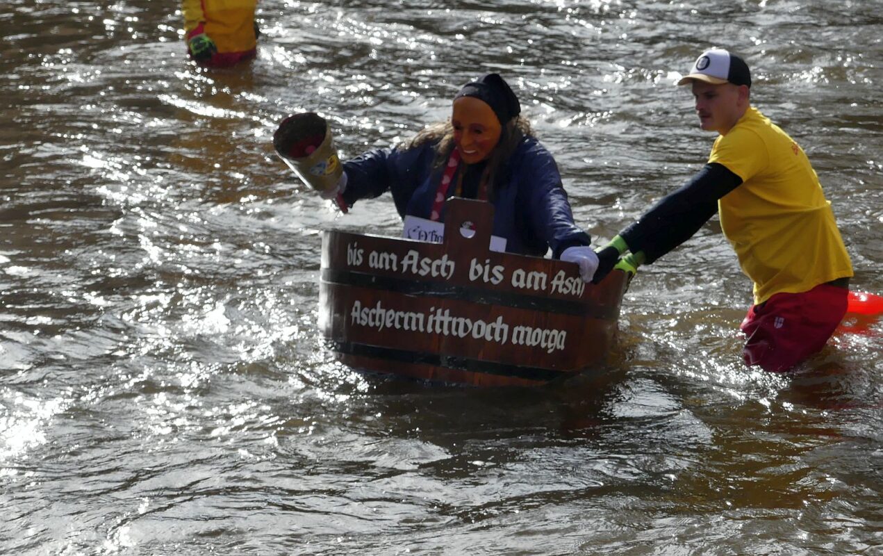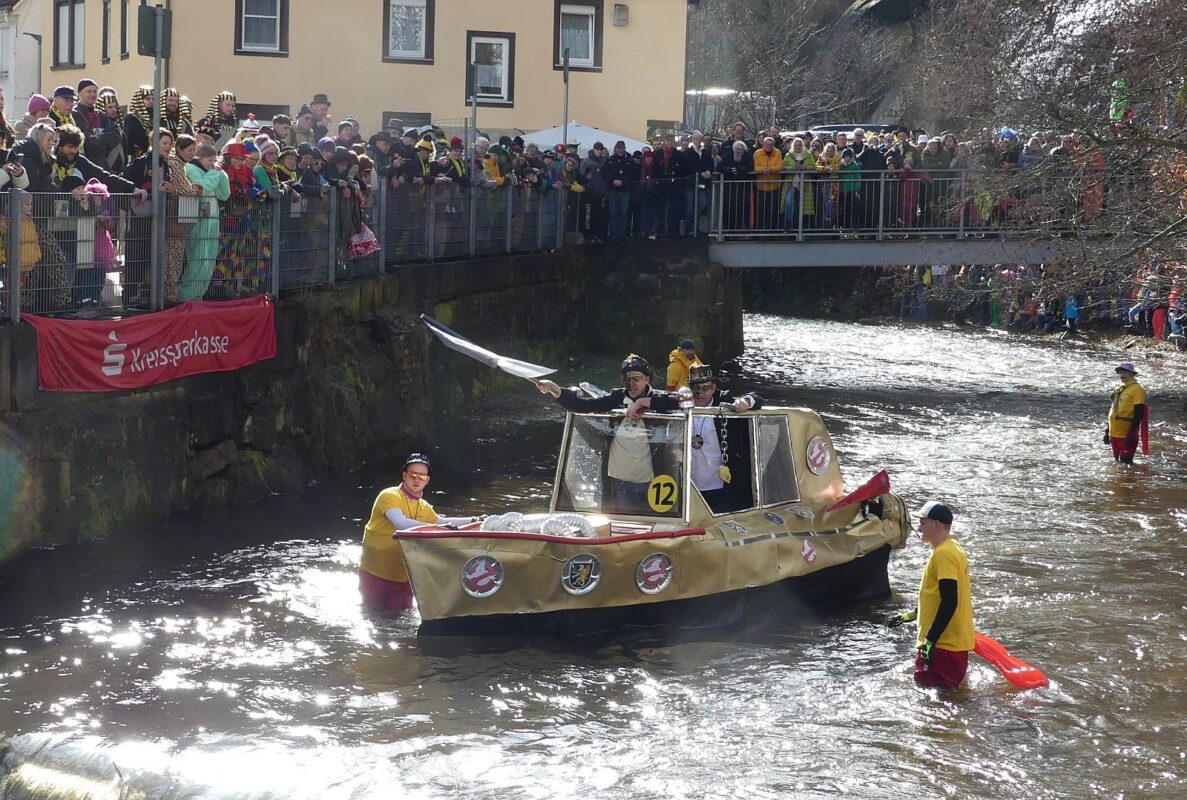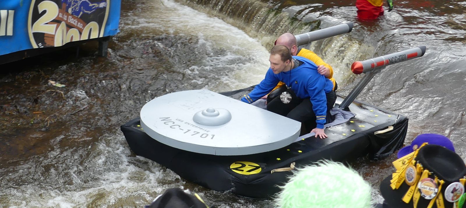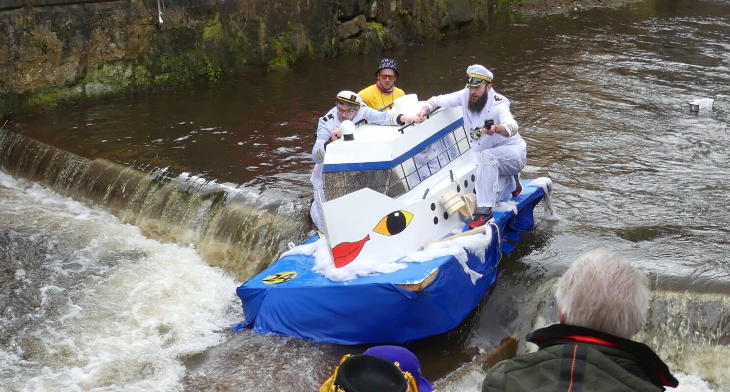 Vor dem eigentlichen Ereignis findet der Zuberumzug statt. Da sind die Zuber alle noch heil. In diesem Jahr gab es auch eine Reihe historischer Zuber, um an die 90-jährige Geschichte der Da-Bach-na-Fahrt zu erinnern.