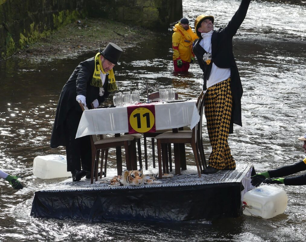 So viel Wasser wie selten schoss dieses Jahr die Schiltach hinunter, als sich die 40 plus Zuber pünktlich um 13 Uhr auf den Weg machten. Die 495 Meter im etwa achteinhalb Grad kalten Wasser bewältigte ein Gutteil der Zuberkapitäne und -kapitäninnen nicht furztrocka.