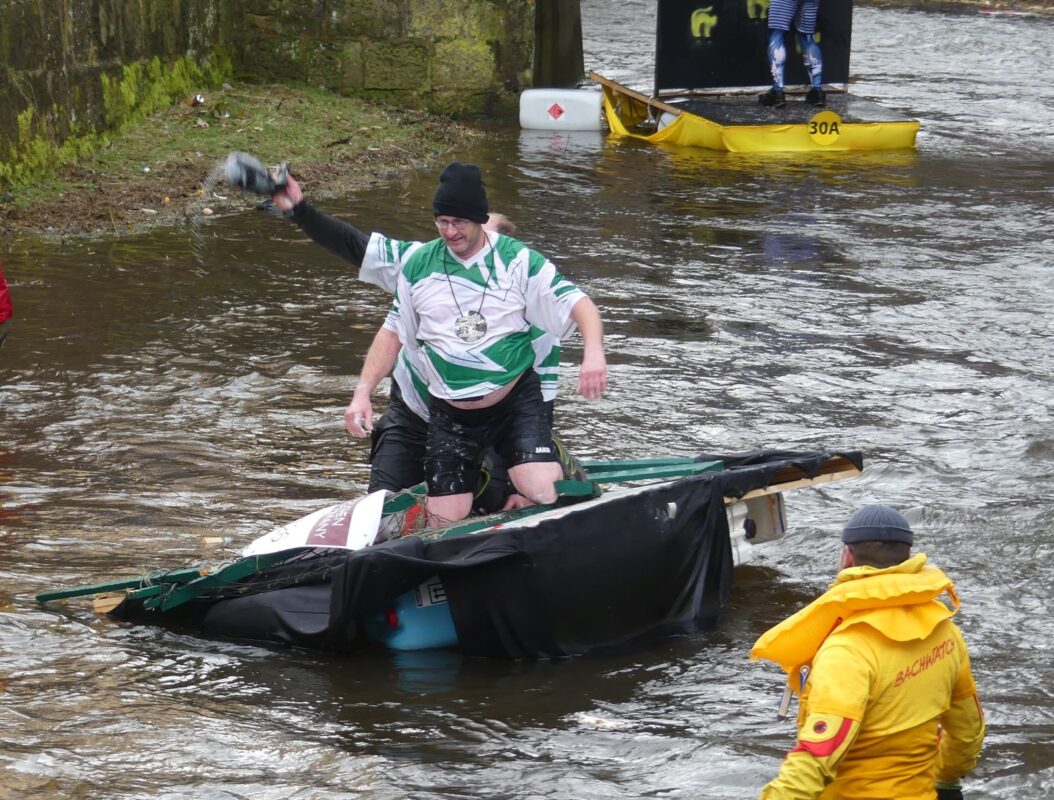 Viele Zuber schafften es auch nicht heil ins Ziel, sondern zerlegten sich bereits unterwegs. Sogar der Startfahrer Stefan Link kenterte noch vor dem Rossgumpen. Das tat der guten Stimmung aber keinen Abbruch, zumal pünktlich zum Start die Sonne aus den Wolken hervorkam und es erst nach Schlussfahrerin Steffi Melvin zu regnen begann.