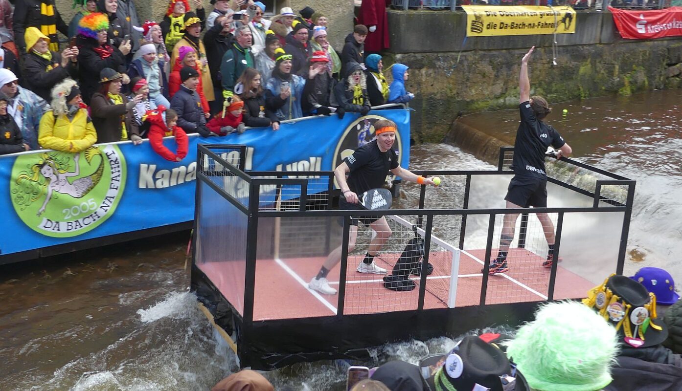 Schramberg. Unter Extrembedingungen bewältigten die weltbesten Kanalfahrer am Montag die Fahrt durch den Kirchenbach. Wer bei so viel Wasser im vollen Kanal „furztrocka“ ankam, der beherrscht seien Zuber oder hatte mehr Glück als die, die Batsch-nass im Bach gelandet sind. Vor 90 Jahren fand die erste Da-Bach-Na-Fahrt in Schramberg statt.