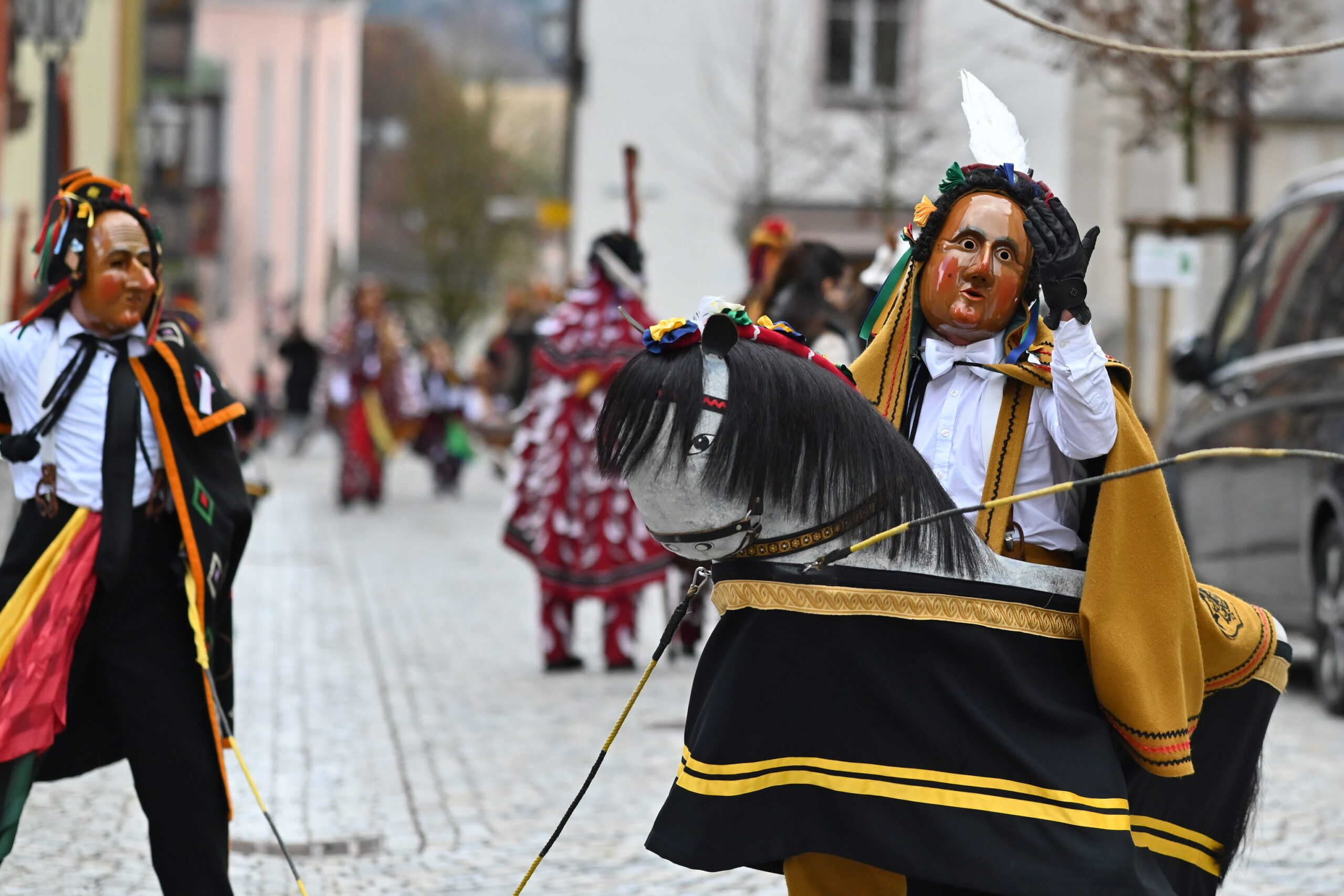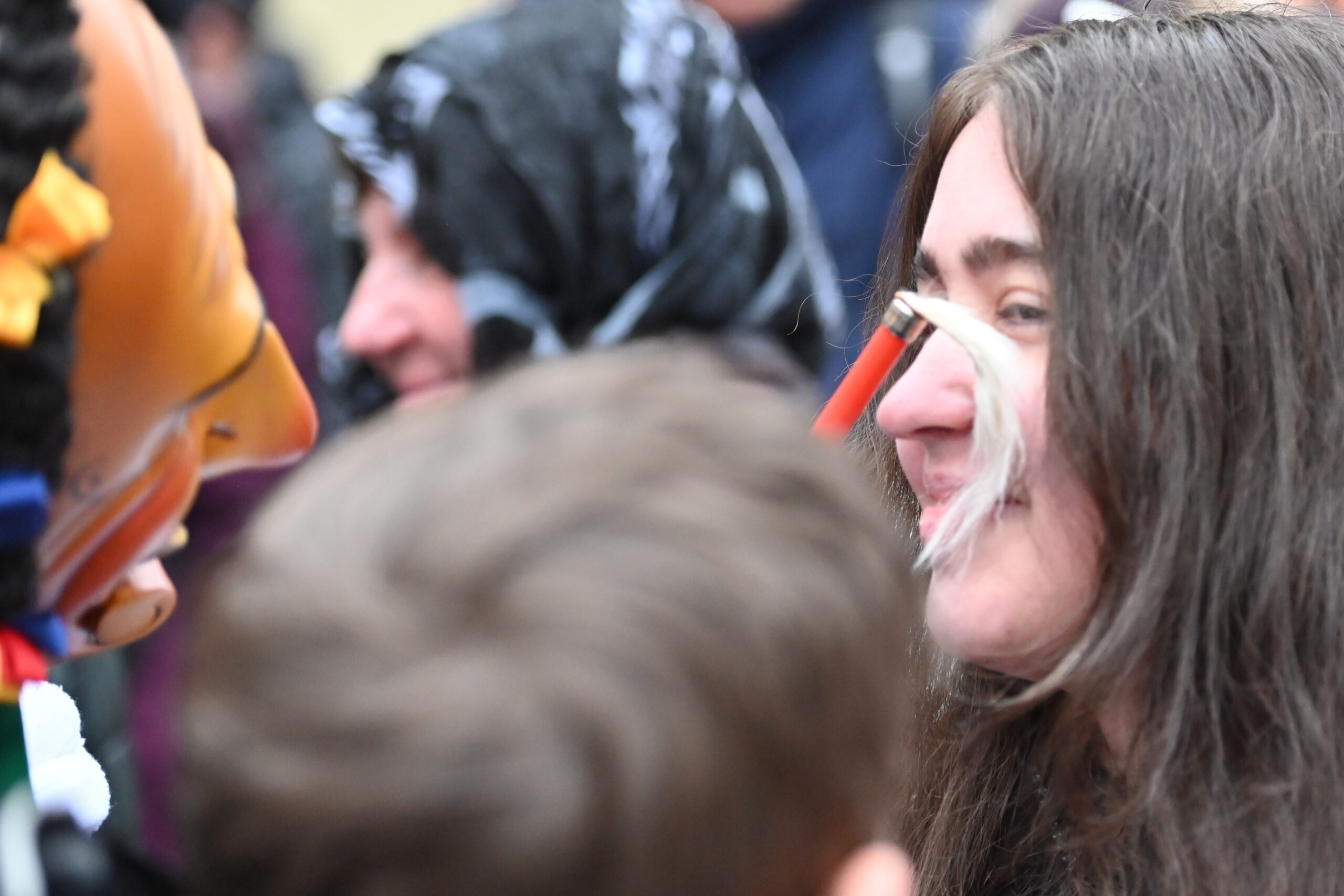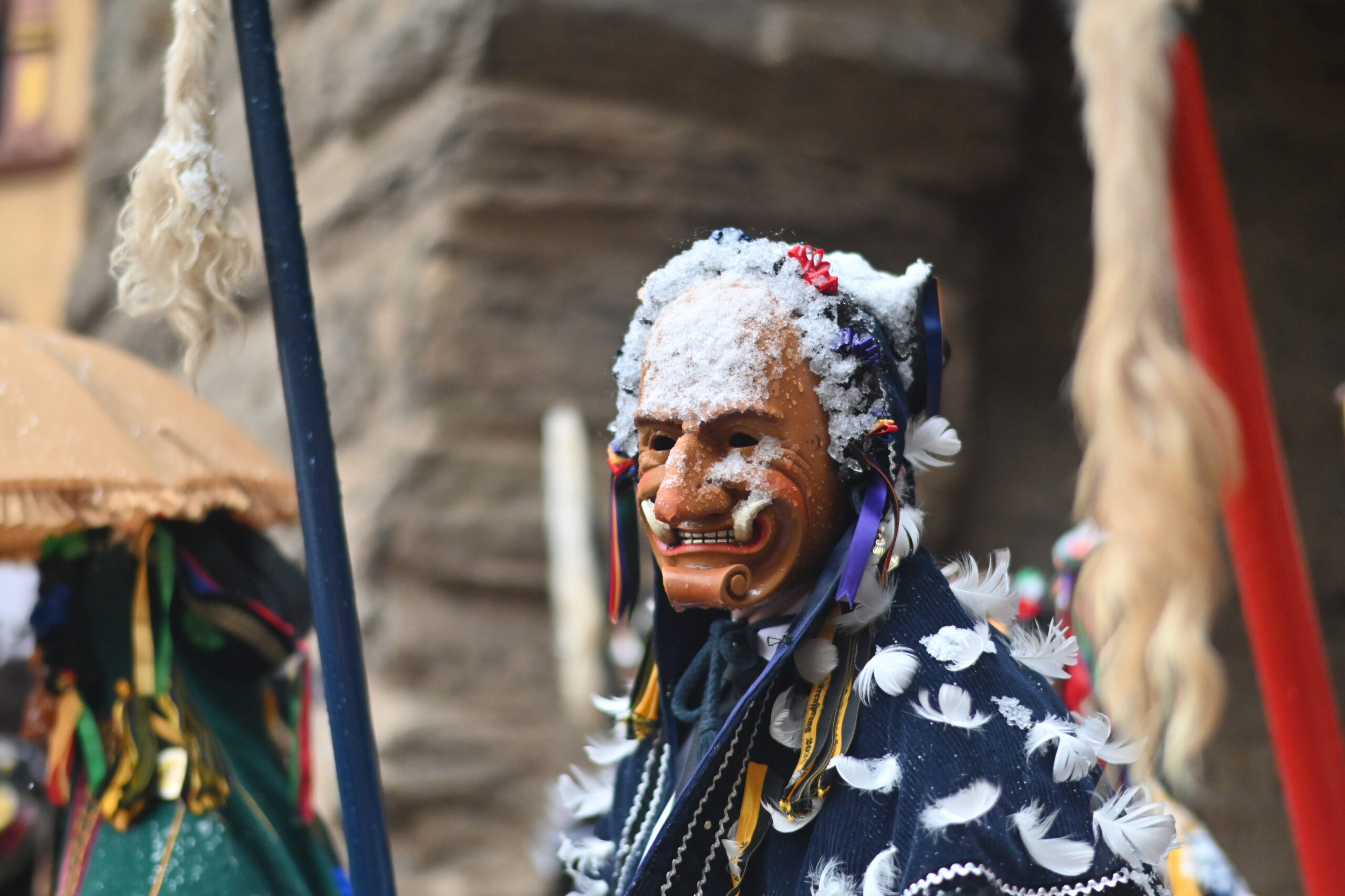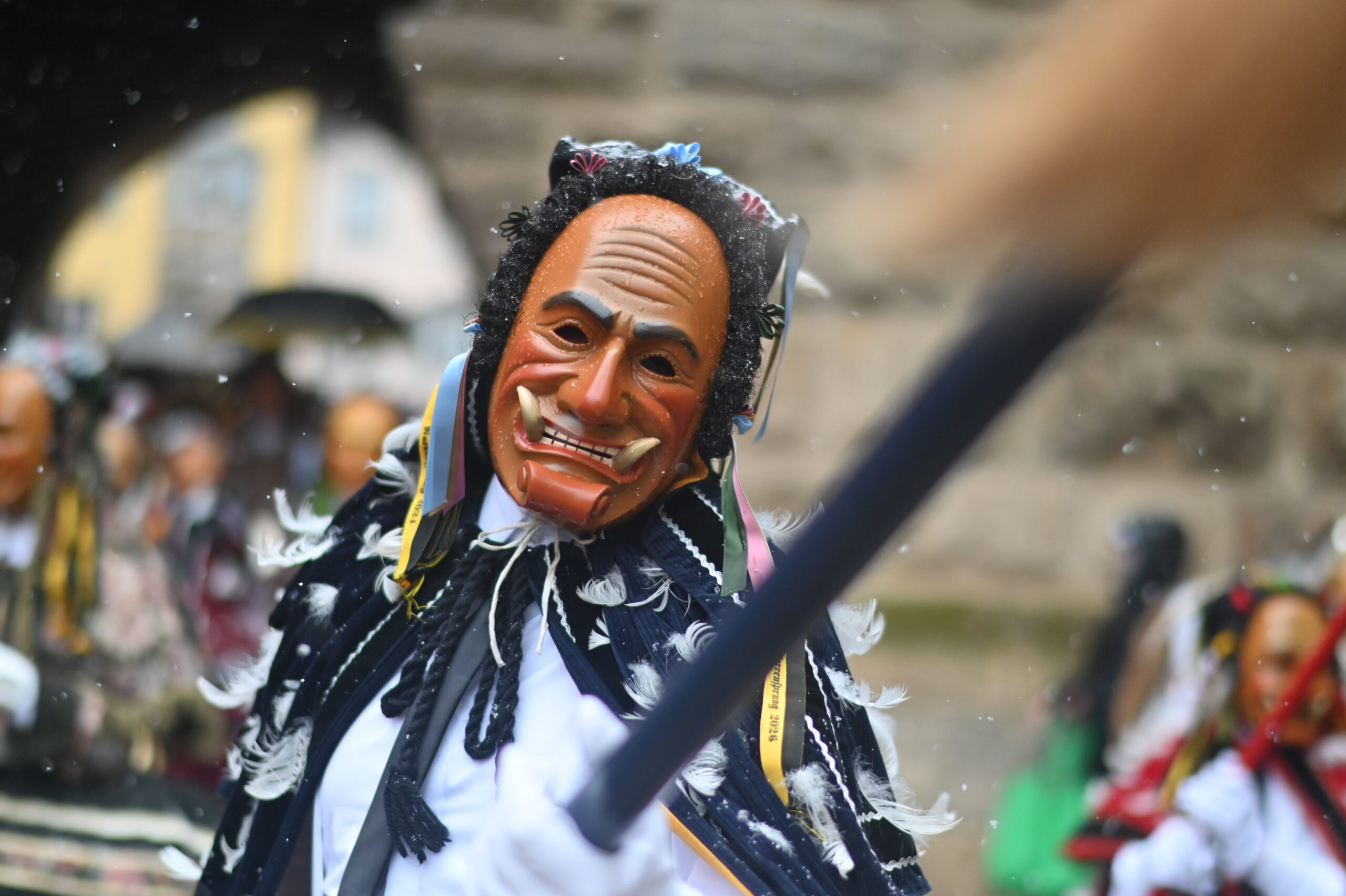 Der zweite Tag hat immer eine ganz eigene Atmosphäre: Höhepunkt und Wehmut über das baldige Ende liegen nah beieinander. Diesmal kamen noch Wetterkapriolen dazu, denn um zehn vor zwei brach aus fast heiterem Himmel ein heftiges Schneegestöber los, das Narren und Zuschauer in Schnee hüllte – der nach gut zwanzig Minuten wieder verschwunden war. Szenen eines besonderen Fasnetsdienstags – eingefangen von NRWZ-Redakteur Andreas Linsenmann.