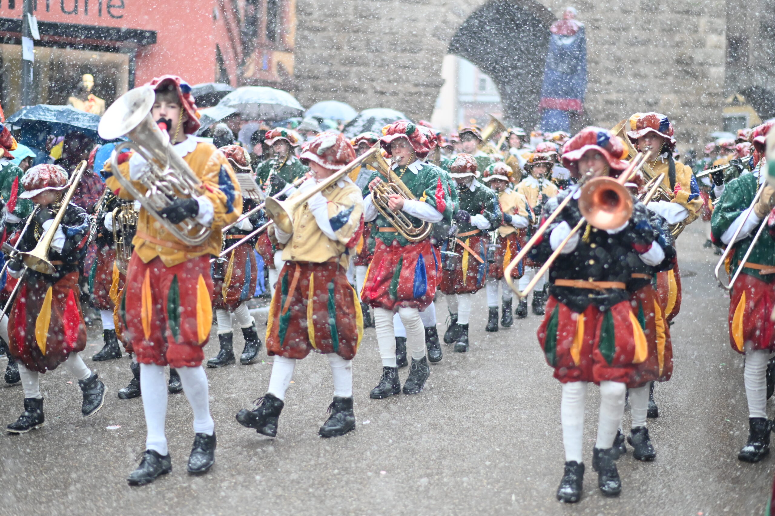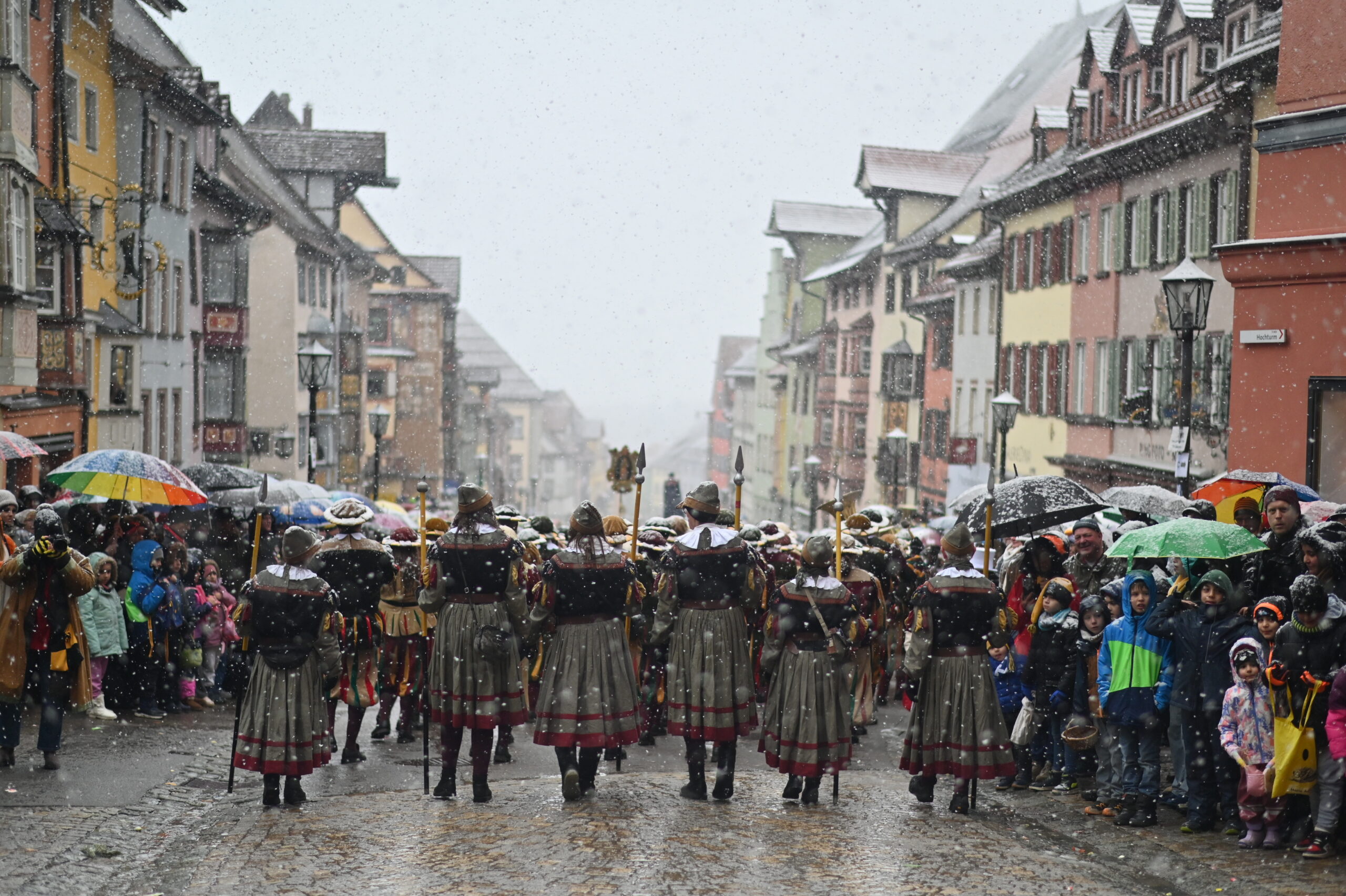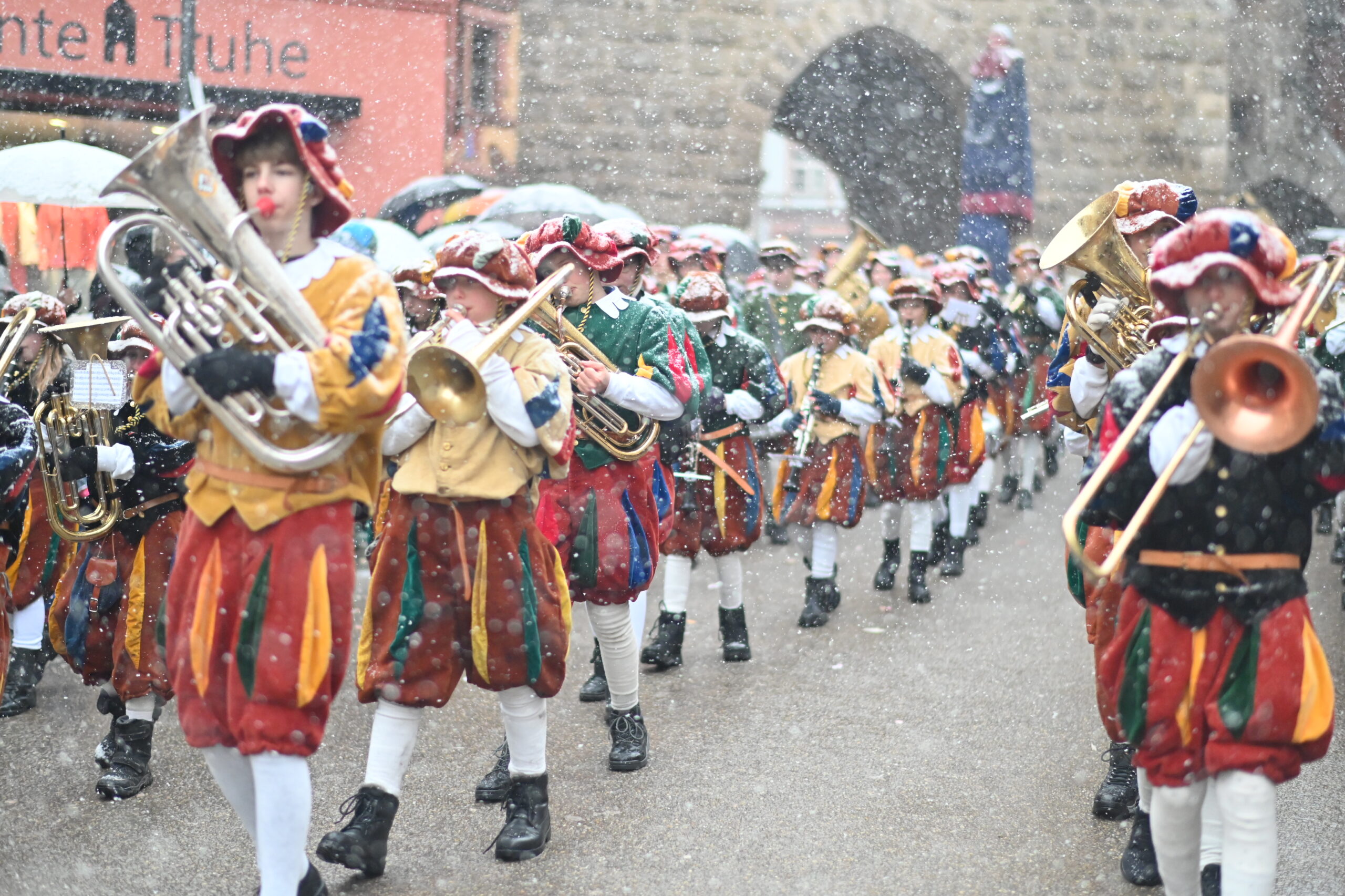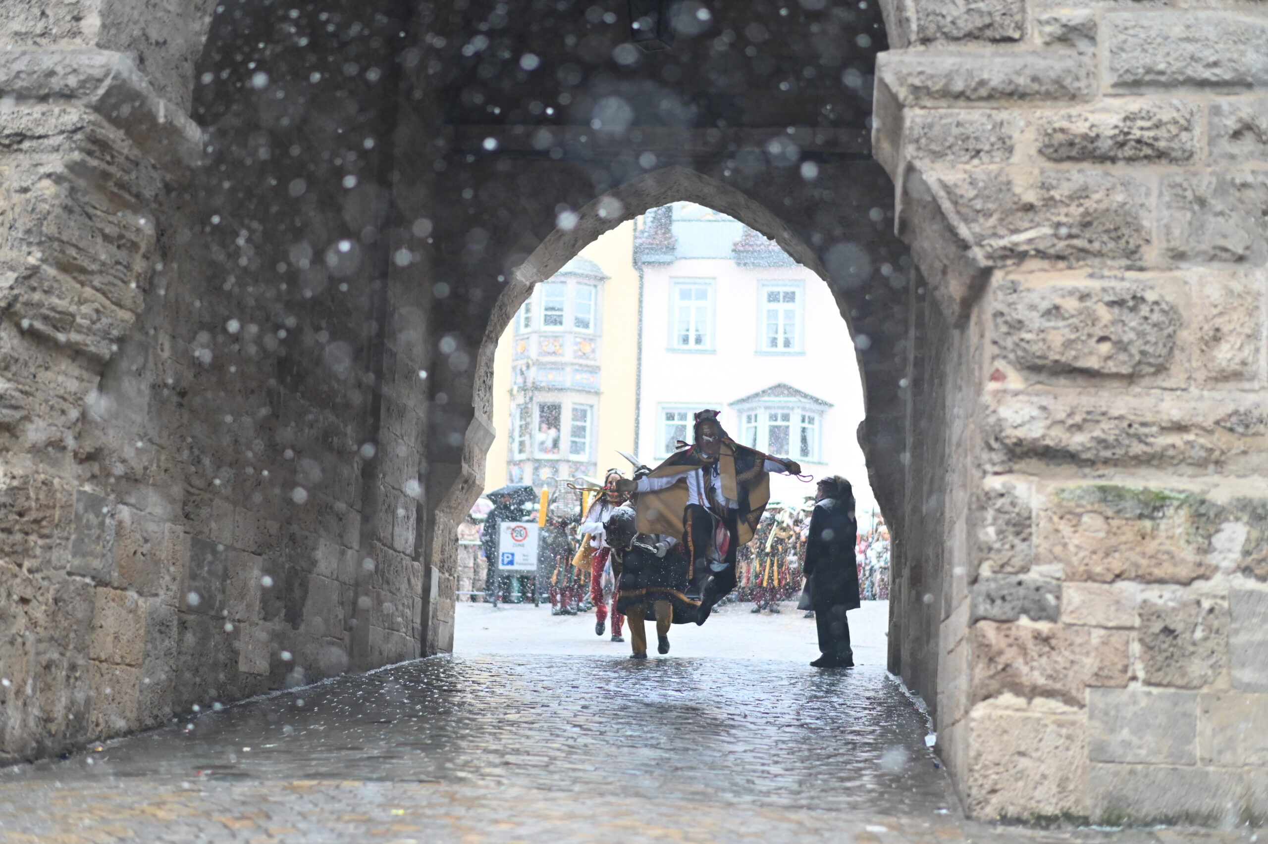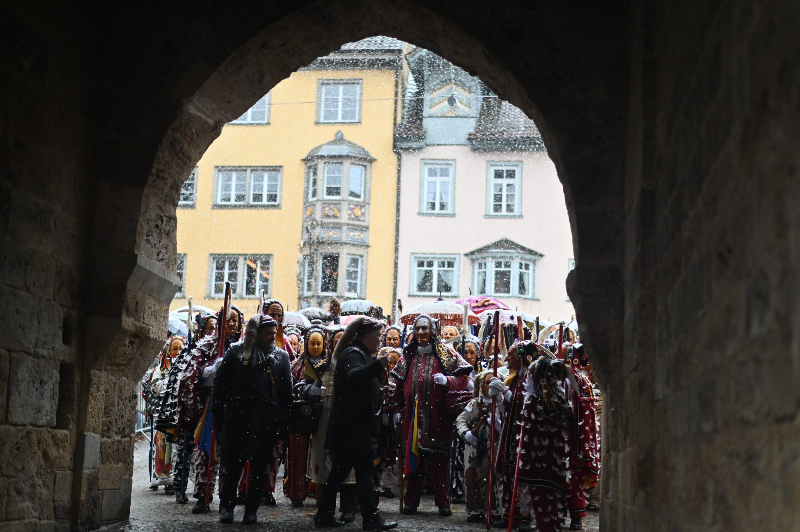Dienstagmittag in Rottweil: Fasnetsglück mit Schneegestöber