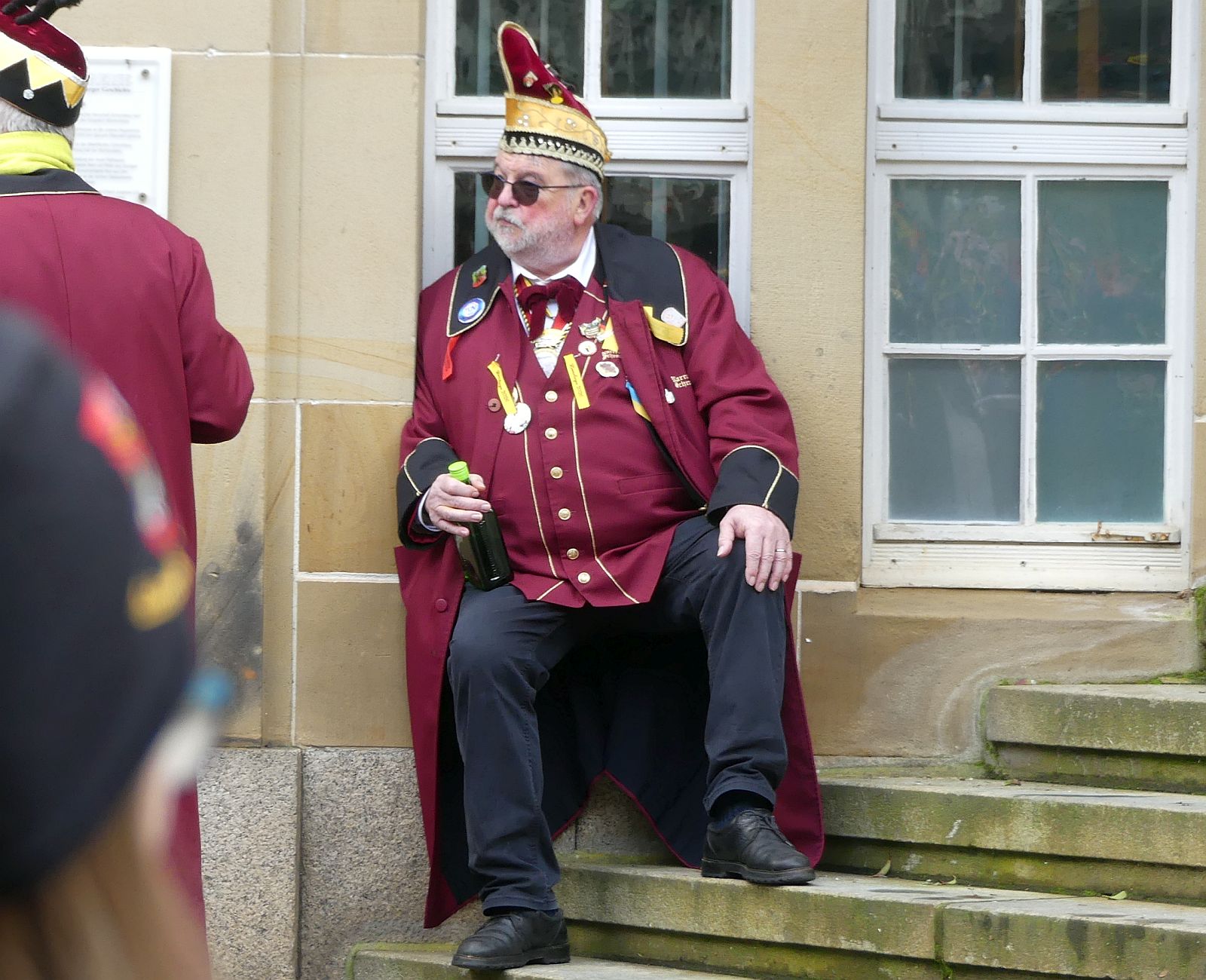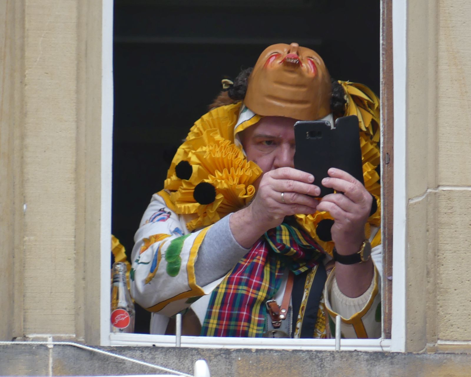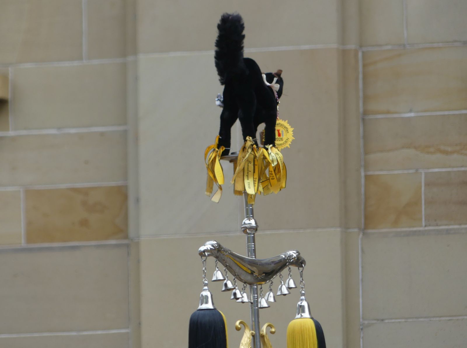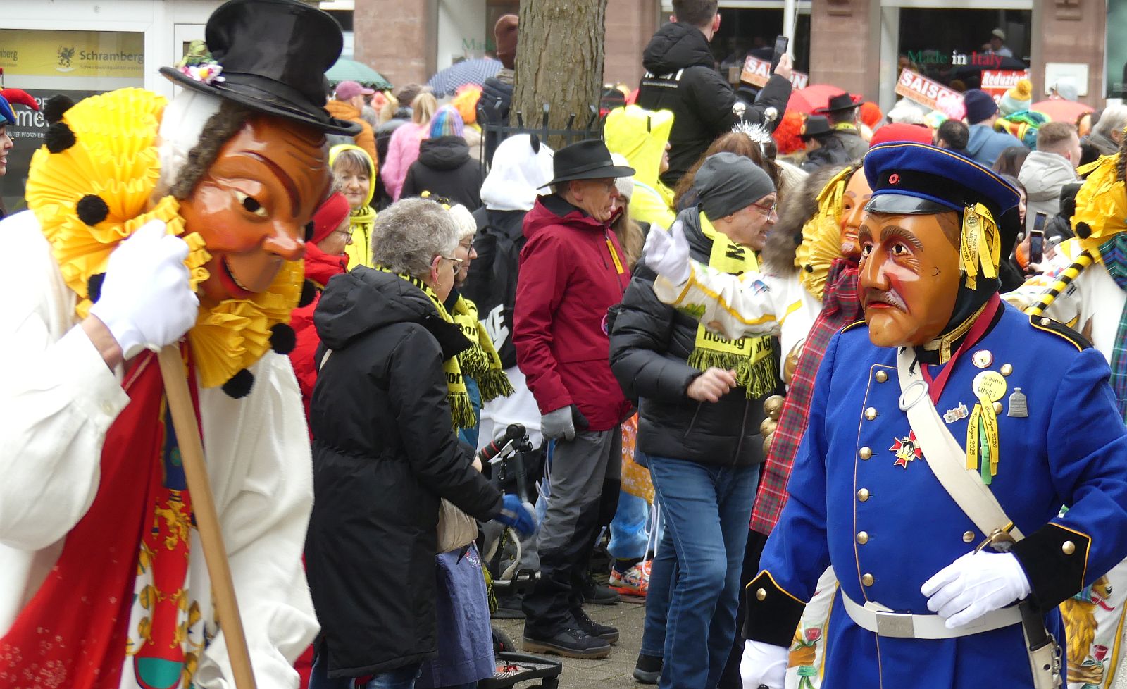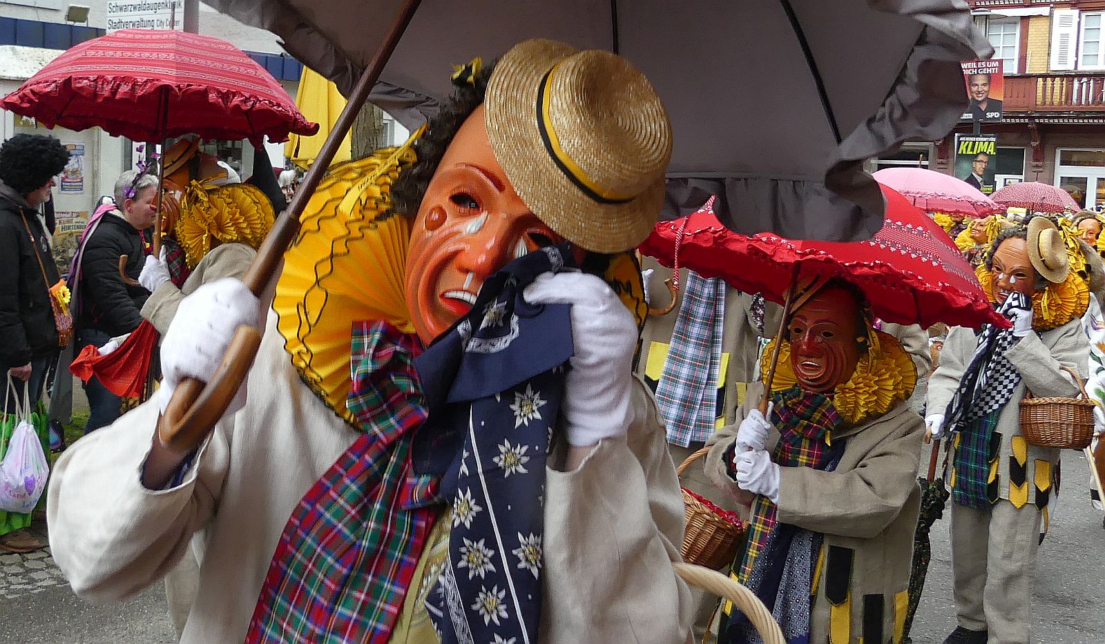 Im Rathaus füllten die Narren im Rathaus ihre Brezelstengel, Täschle und Zuber. Dann ging es hinaus zum wie immer auf die Straßen mit den bunt kostümierten Zuschauerinnen und Zuschauern, die sangen, sprangen und tanzten, und die Narren um Brezeln, Würstle und Schoklädle anbettelte: „Hoorig, hoorig isch dia Katz…“ Das erhörte sogar die Sonne und blinzelte zwischen den Wolken durch.