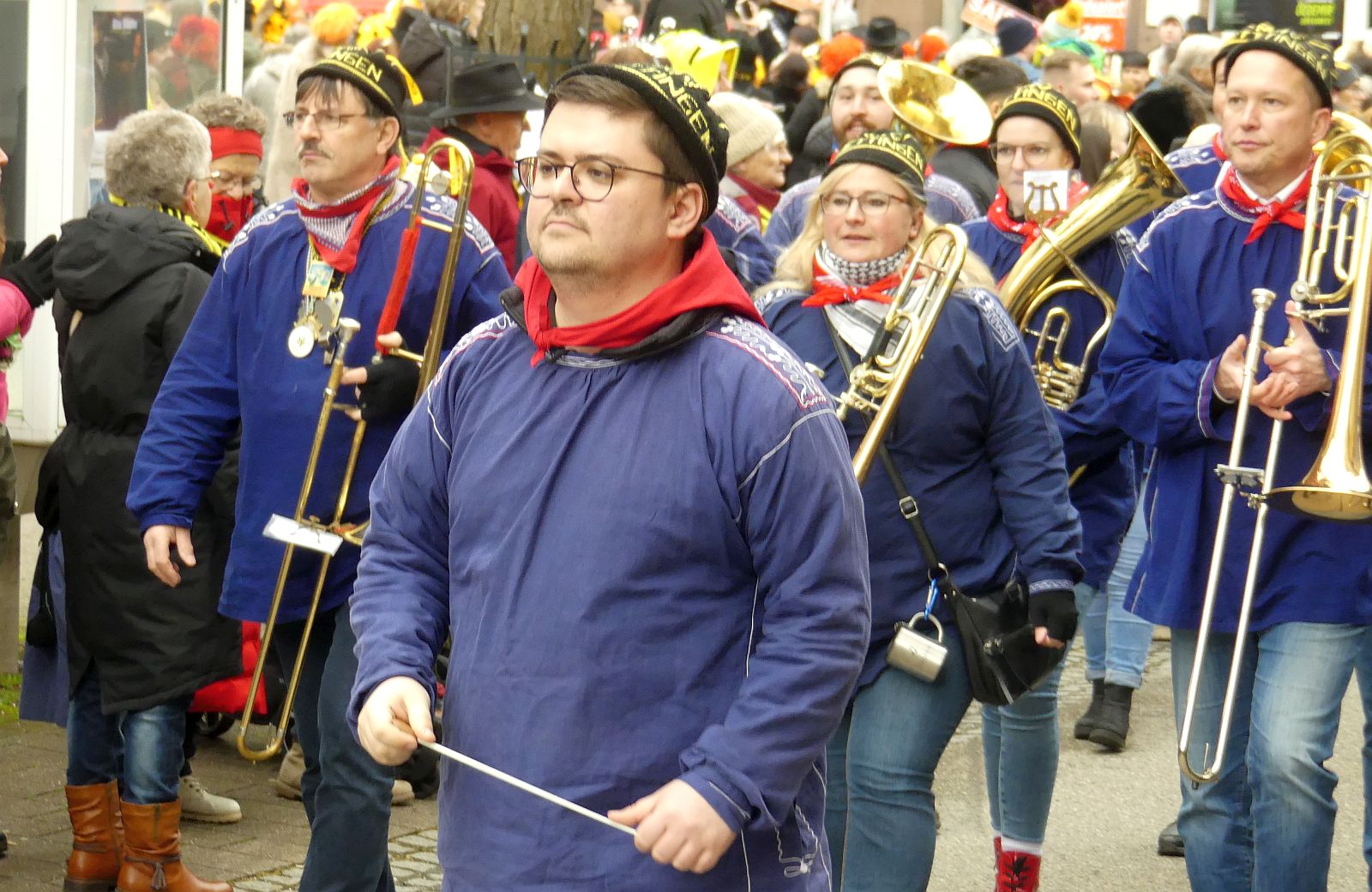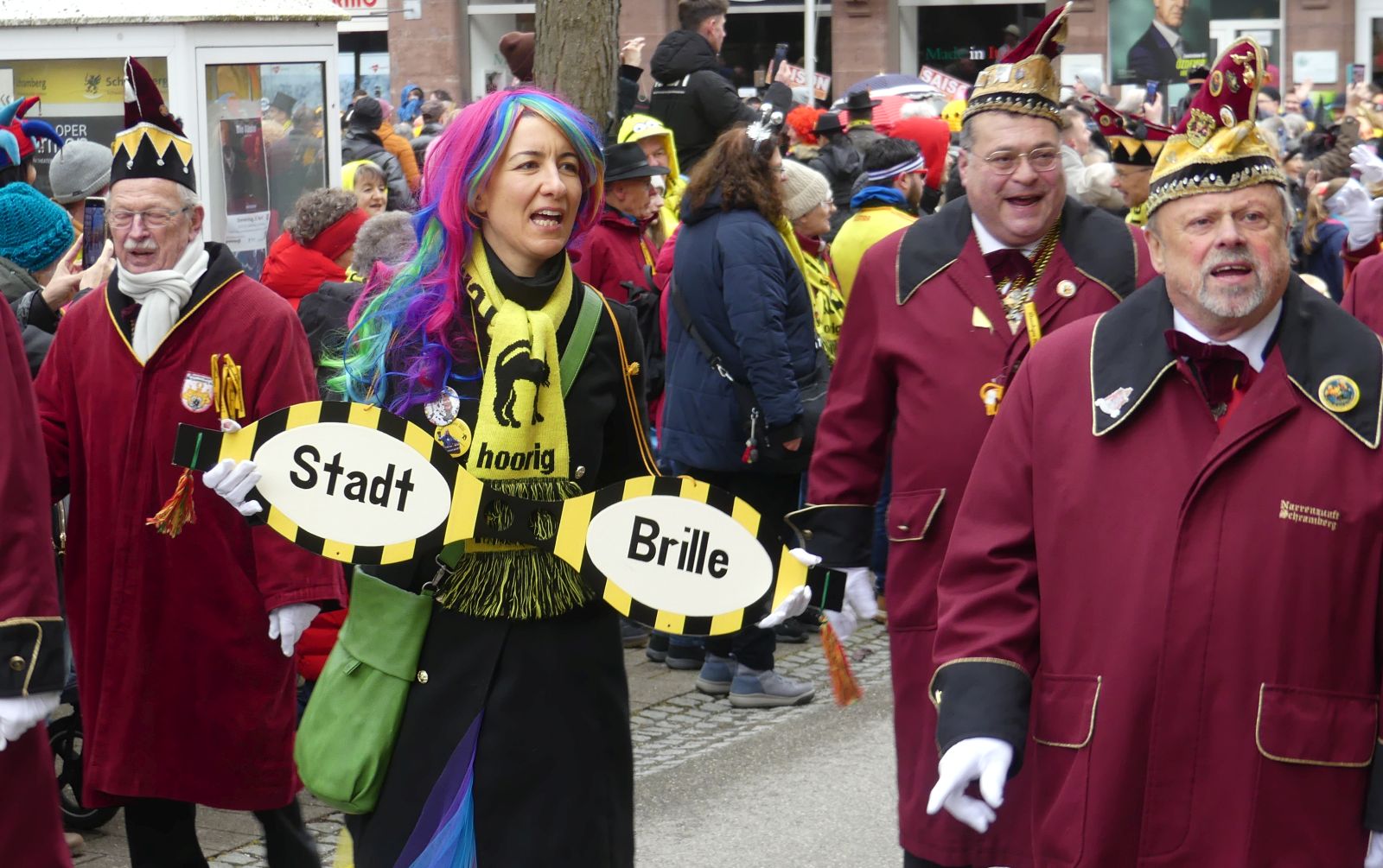 Schramberg – Ohne viele Worte, denn Hanselsprung und anschließender Brezelsegen waren wieder wunderschön. Vorneweg zogen die Stadtmusik und Oberbürgermeisterin Dorothee Eisenlohr mit Stadtbrille und Elferräten und Obernarren. Und natürlich der Kehraus und der Endivien-Butz.