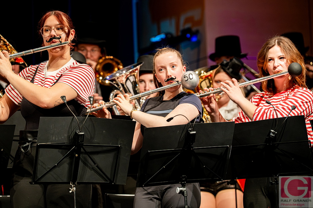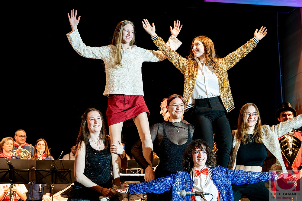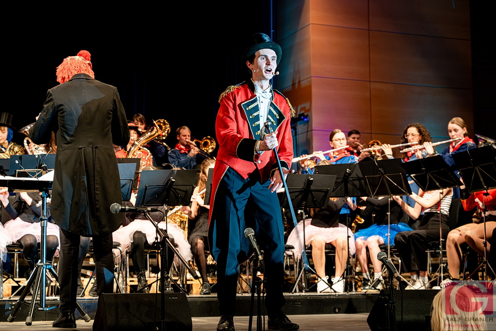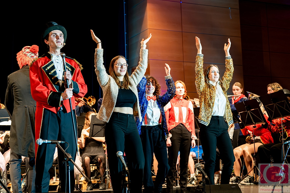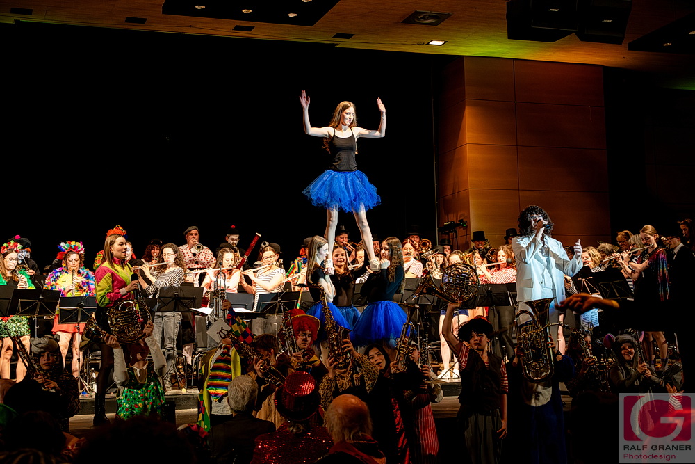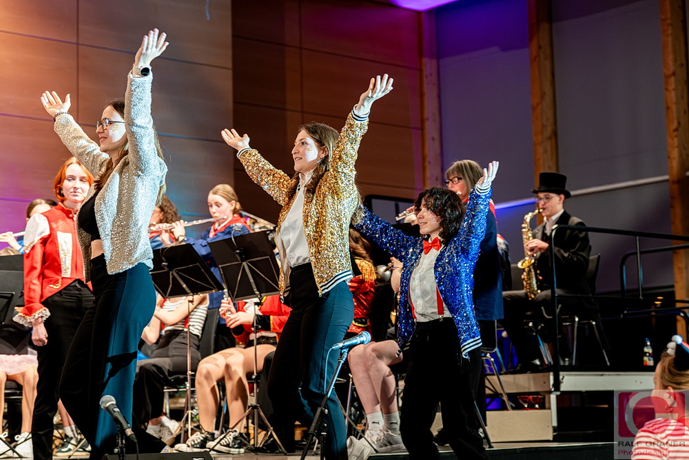 Musikalische Höhepunkte waren unter anderem Titel aus „The Greatest Showman“, „99 Luftballons“, „Oh mein Papa“, „Theater, Theater“ sowie die Xylofon‑Nummer „Zirkus Renz“ und der Rottweiler Narrenmarsch zu Beginn und zum Finale. Für Lacher sorgten Showeinlagen wie die „Fantastischen Tims“ mit Diabolo, ein Wasserballett, eine Turnnummer, Aktionen mit Publikum und ein Marsch‑Quiz, das Oberbürgermeister Dr. Christian Ruf gewann. Die Besucher erlebten so einen kurzweiligen Abend im Zirkus‑Ambiente, der mit lang anhaltendem Applaus endete.