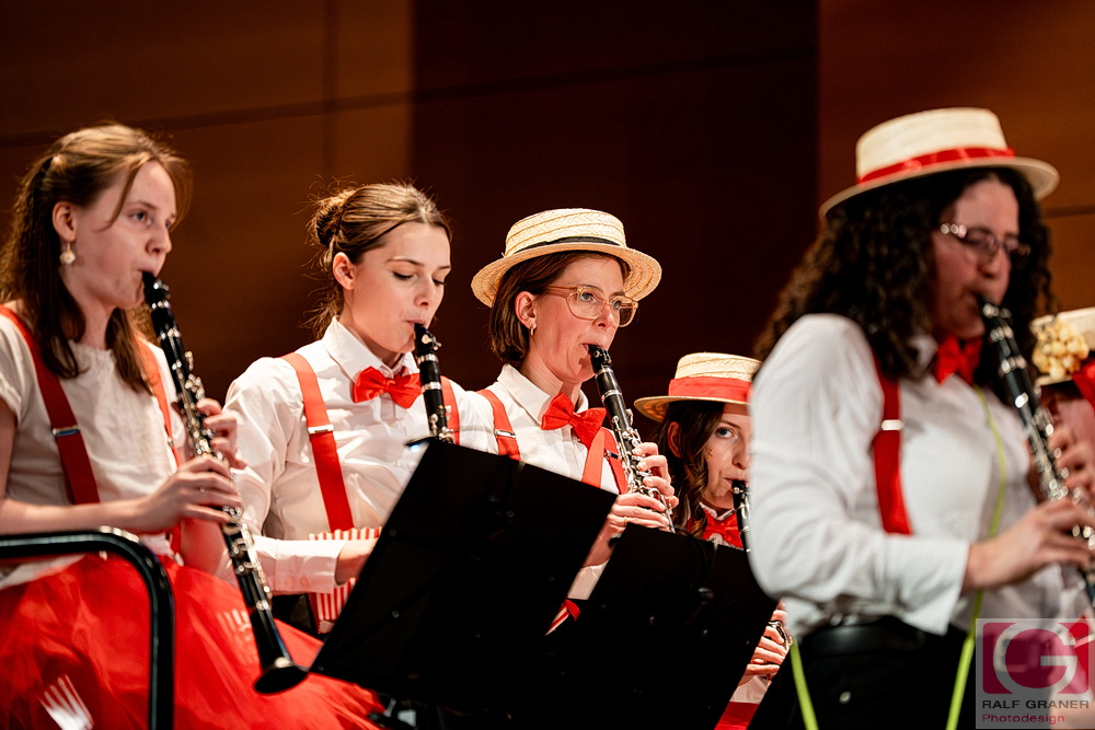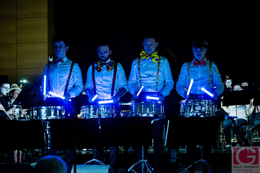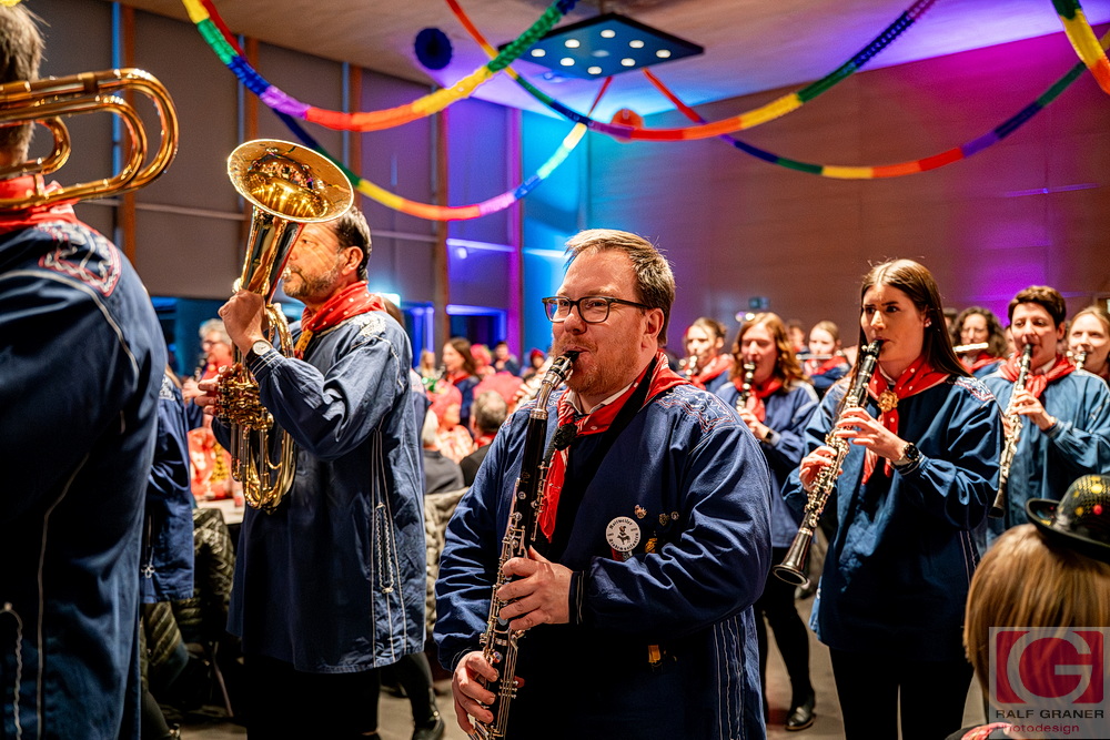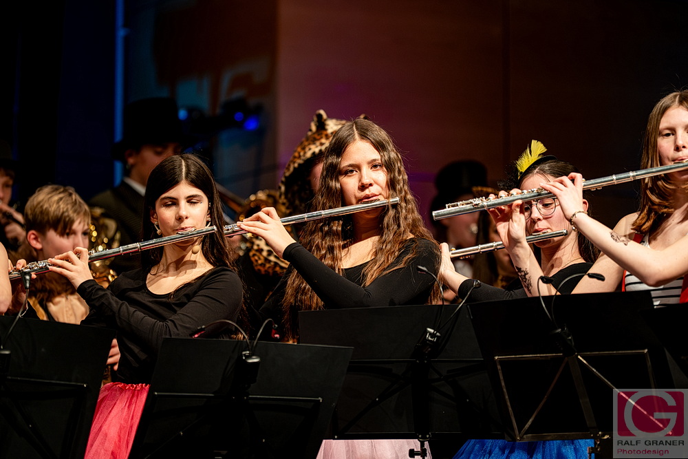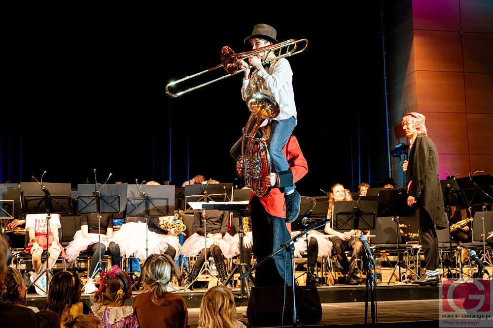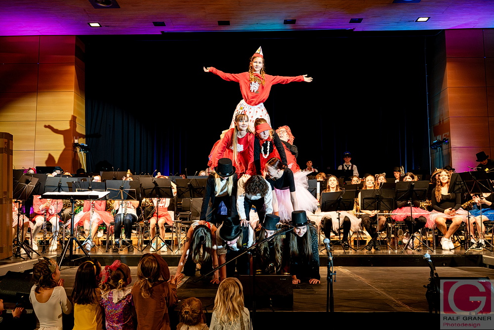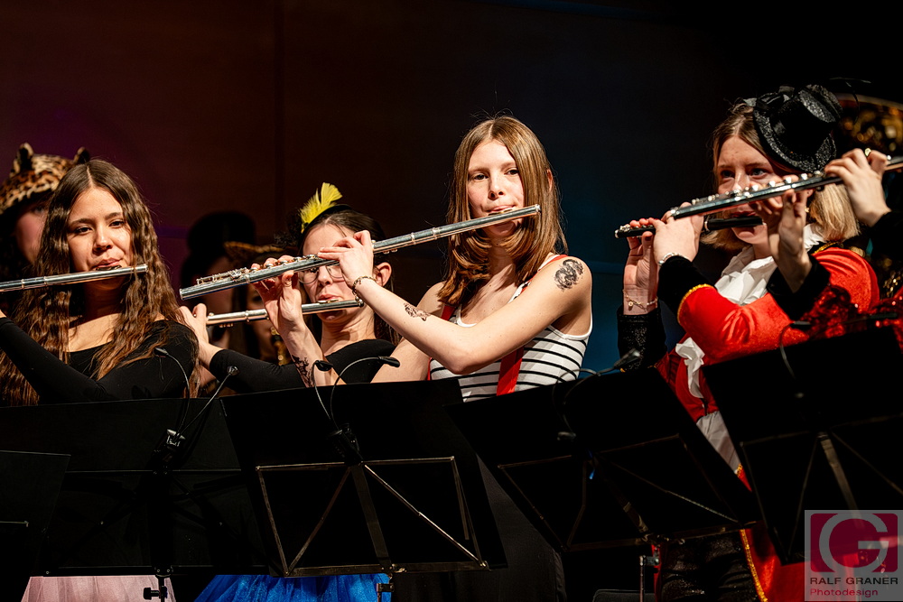Musikalische Höhepunkte waren unter anderem Titel aus „The Greatest Showman“, „99 Luftballons“, „Oh mein Papa“, „Theater, Theater“ sowie die Xylofon‑Nummer „Zirkus Renz“ und der Rottweiler Narrenmarsch zu Beginn und zum Finale. Für Lacher sorgten Showeinlagen wie die „Fantastischen Tims“ mit Diabolo, ein Wasserballett, eine Turnnummer, Aktionen mit Publikum und ein Marsch‑Quiz, das Oberbürgermeister Dr. Christian Ruf gewann. Die Besucher erlebten so einen kurzweiligen Abend im Zirkus‑Ambiente, der mit lang anhaltendem Applaus endete.