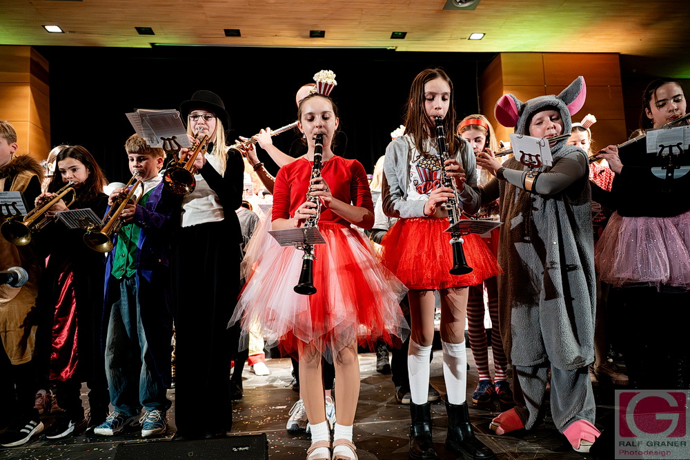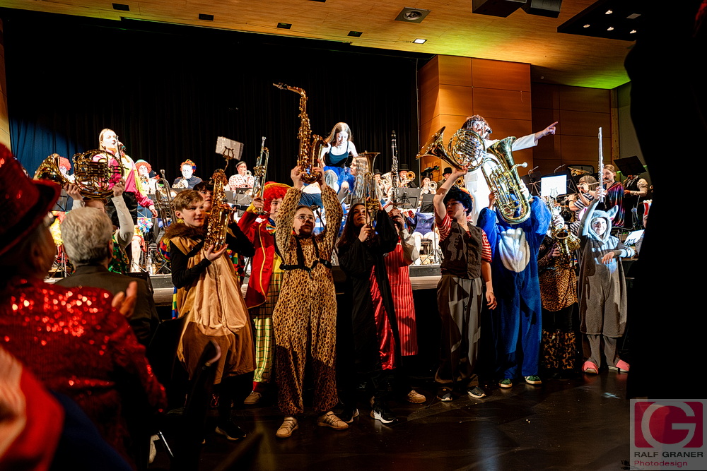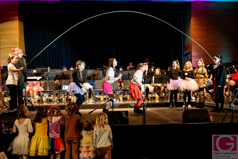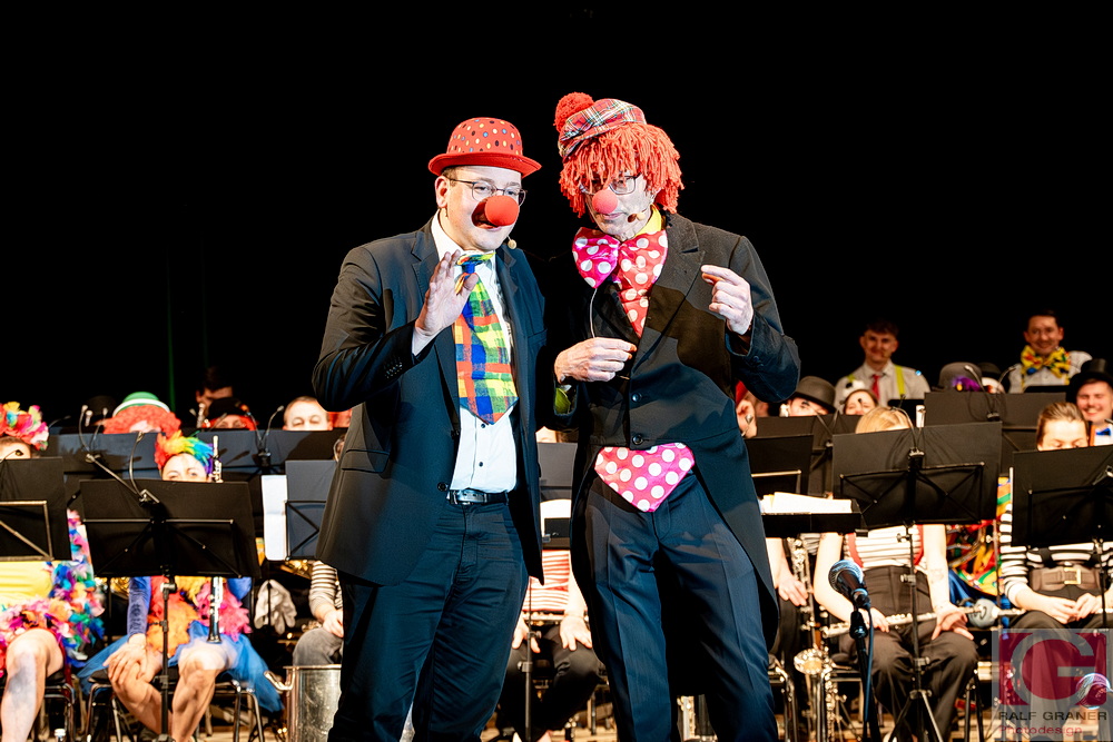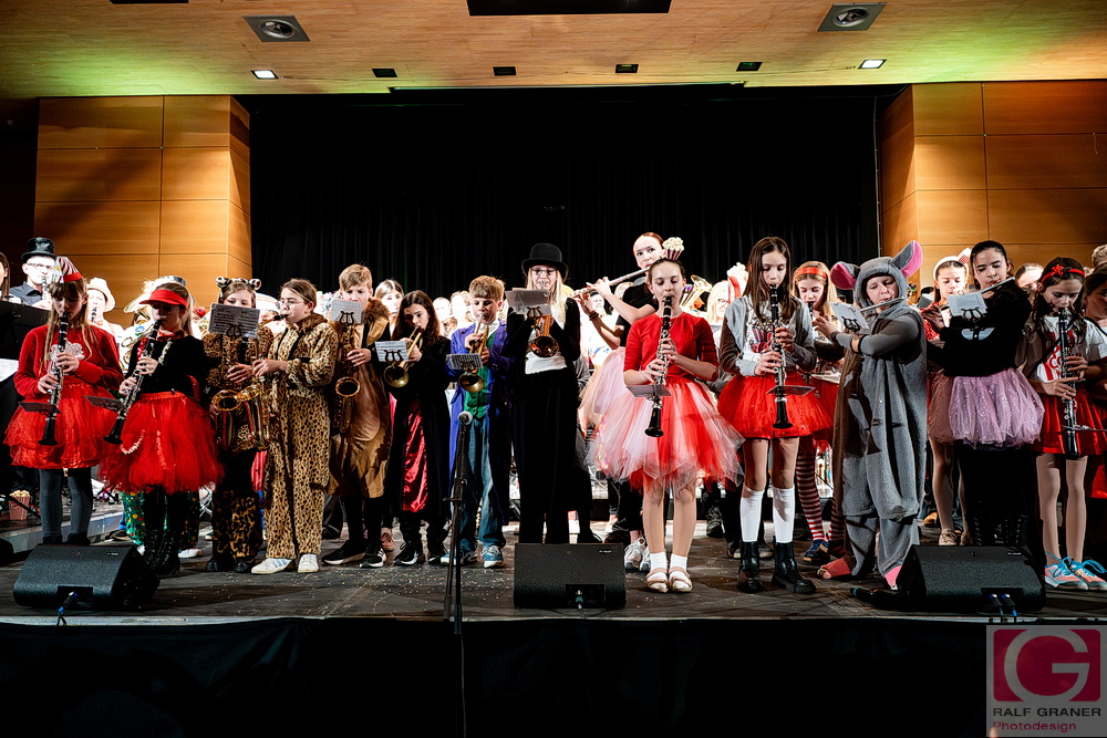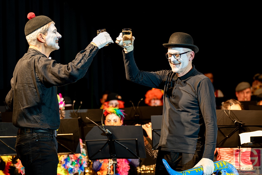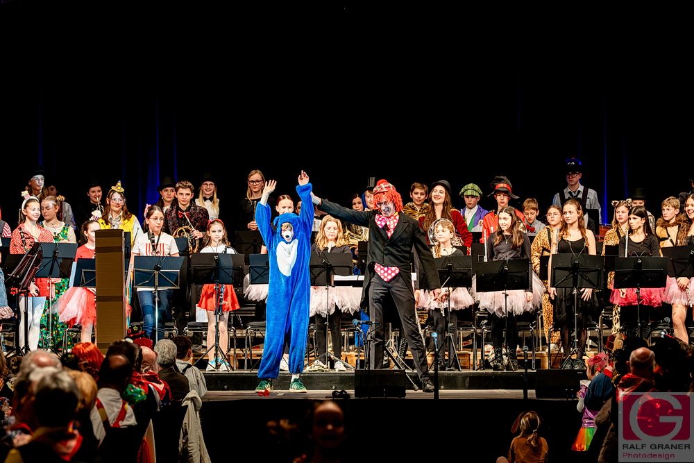 Jugendkapelle und Stadtkapelle Rottweil haben an zwei Abenden ihr Fasnetskonzert unter dem Motto „Manege frei“ in der ausverkauften Stadthalle präsentiert und rund 200 Mitwirkende auf die Bühne gebracht. Geboten wurde ein vierstündiges Programm mit Blasmusik, Gesang, Zauberei, Akrobatik und viel Clownerie, durch das die Moderatoren Marius Kirsner und Michael Lacher führten.