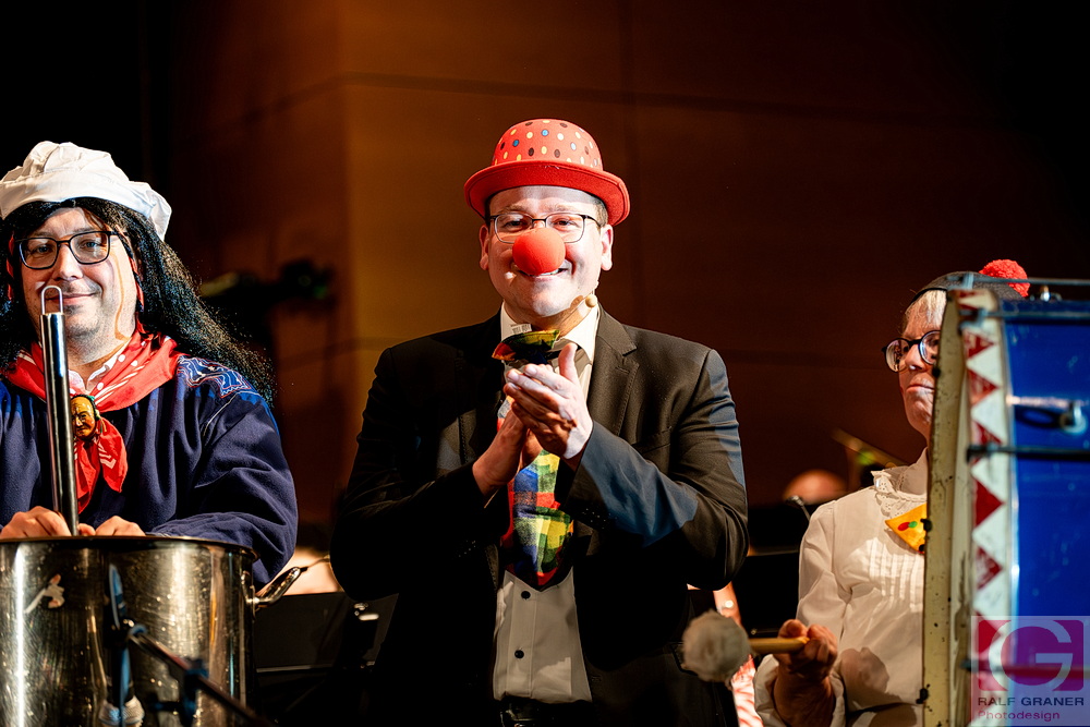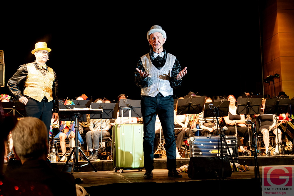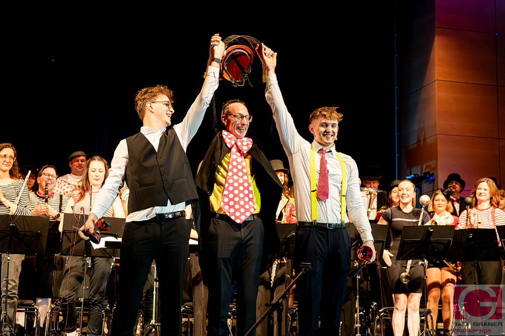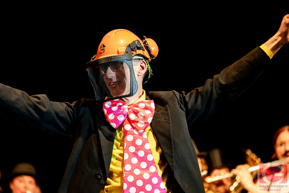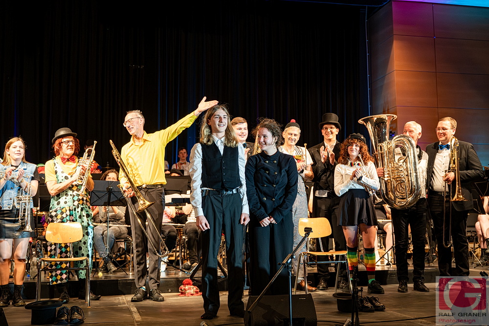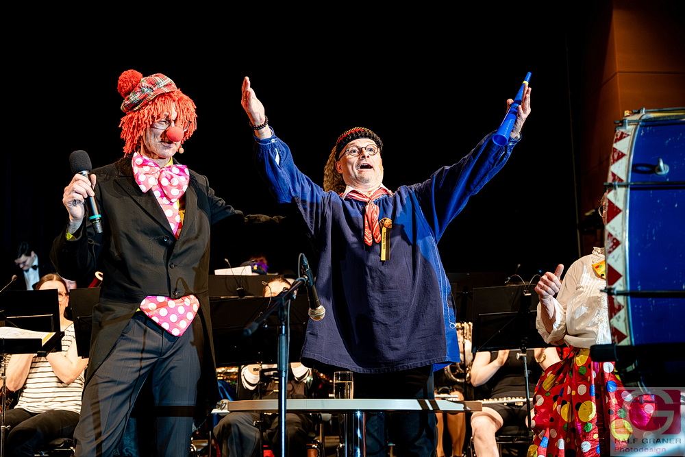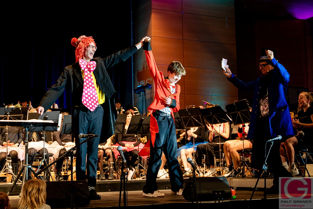 Jugendkapelle und Stadtkapelle Rottweil haben an zwei Abenden ihr Fasnetskonzert unter dem Motto „Manege frei“ in der ausverkauften Stadthalle präsentiert und rund 200 Mitwirkende auf die Bühne gebracht. Geboten wurde ein vierstündiges Programm mit Blasmusik, Gesang, Zauberei, Akrobatik und viel Clownerie, durch das die Moderatoren Marius Kirsner und Michael Lacher führten.