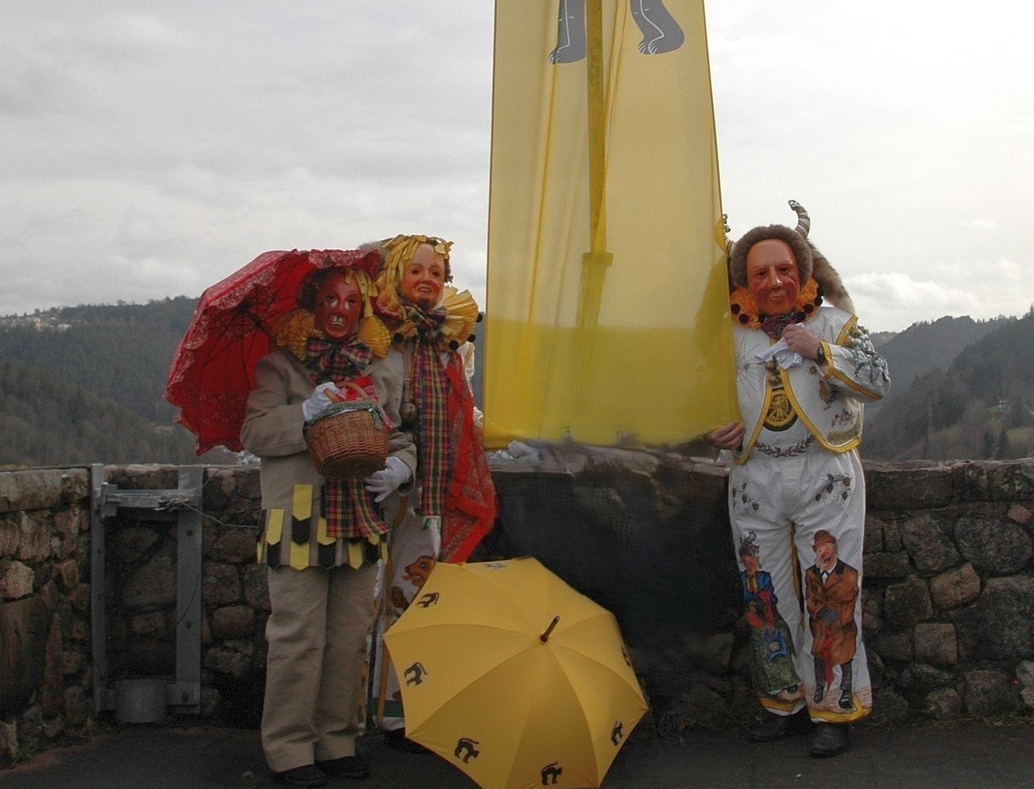 Wie bereits in den vergangenen Jahren haben Burgarbeiter der Höflevereinigung rechtzeitig zur Fasnet die Narrenfahne gehisst, wie Hans Huber berichtet. Eine Abordnung des harten Kerns der Burgarbeiter machte sich am Schmotzigen Dunnschtig in einer Regenpause auf, die Fahne rechtzeitig vor den Hochfeiertagen zu hissen.
