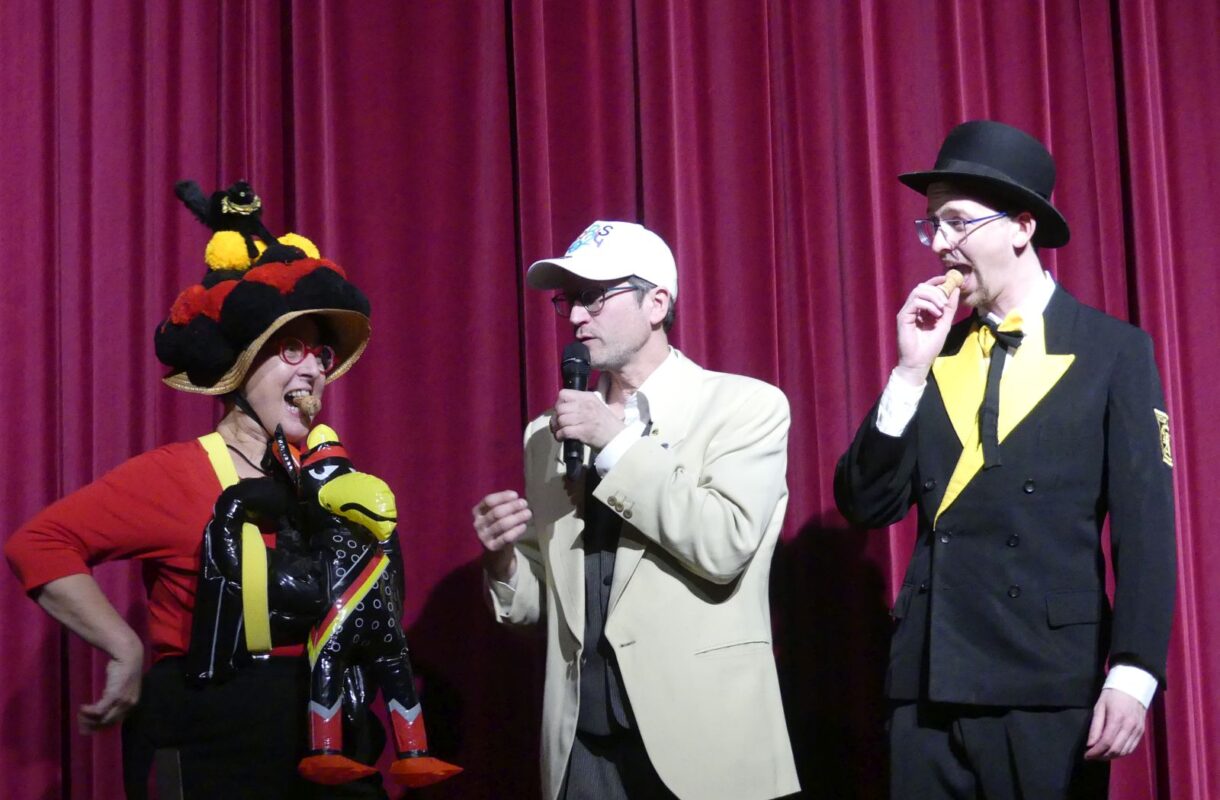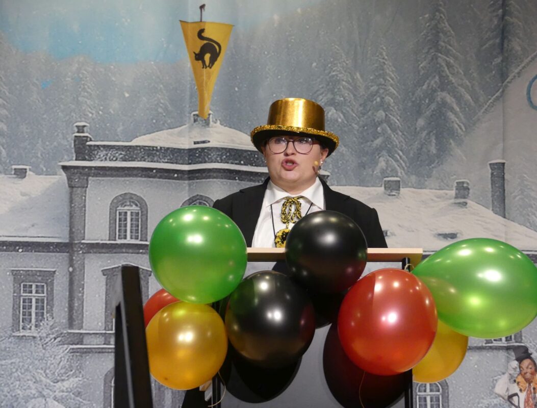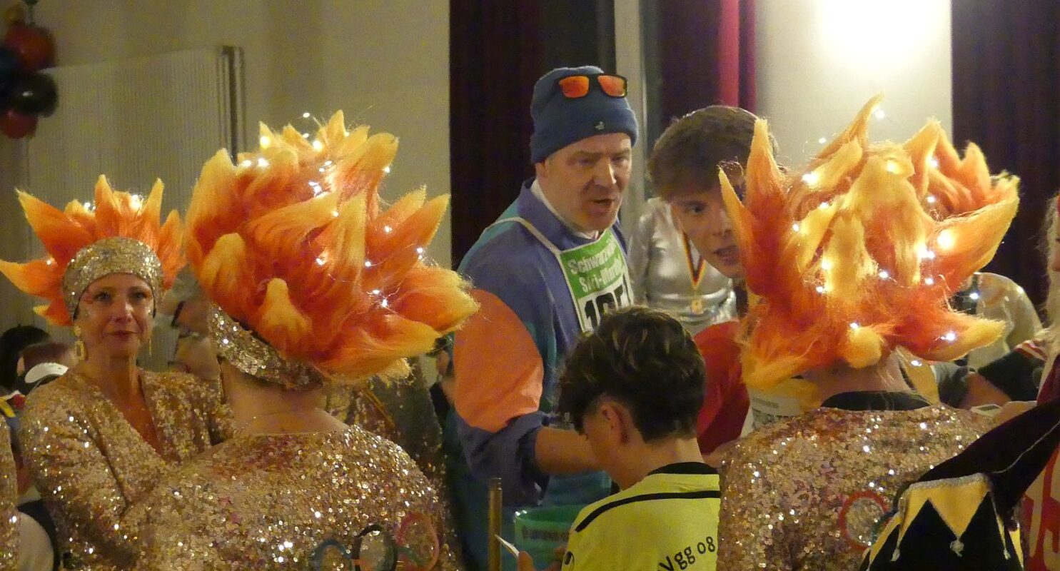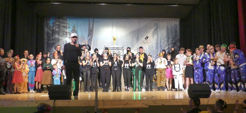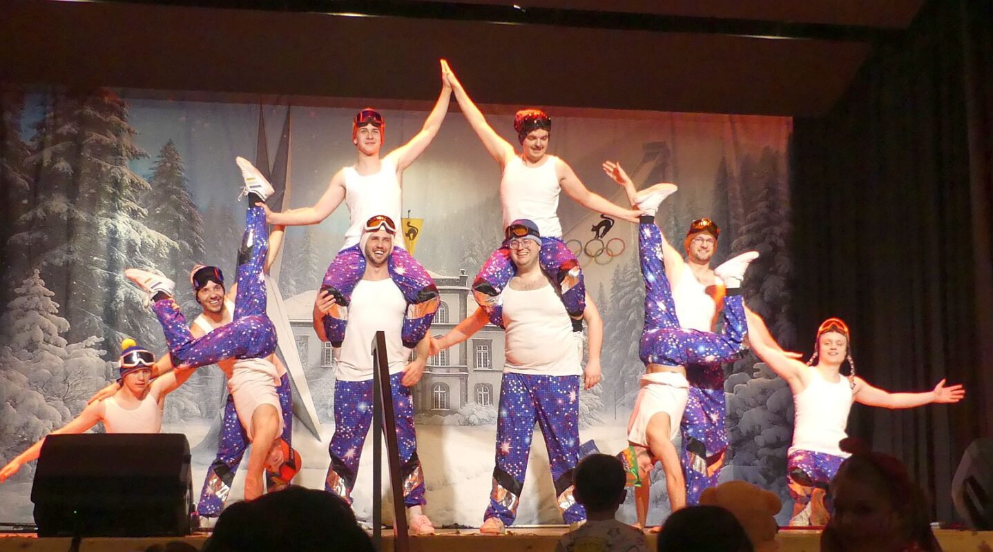 Zunftmeister Dold, der wieder durchs Programm führte und die Umbaupausen füllte, berichtete von einem „ganz entspannten“ Skiausflug mit den Kindern, bevor „bunt und tierisch“ die Elferfrauen ein Vogel-Strauß-Ballett mit spektakulären Lichteffekten auf die Bärenbühne zauberten.