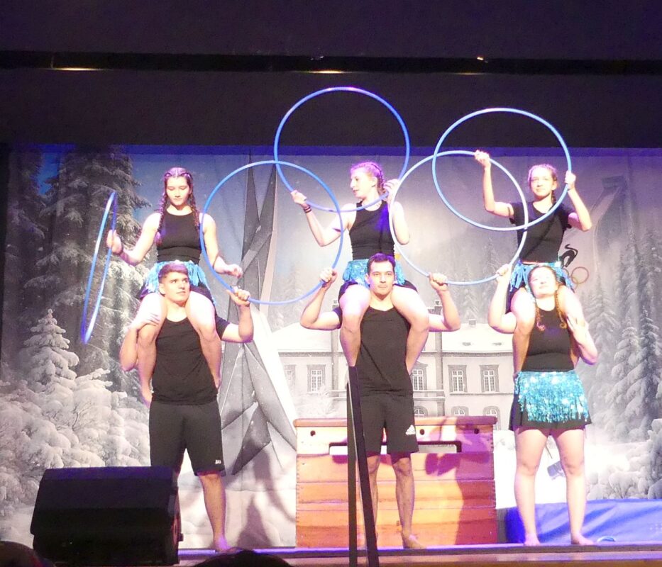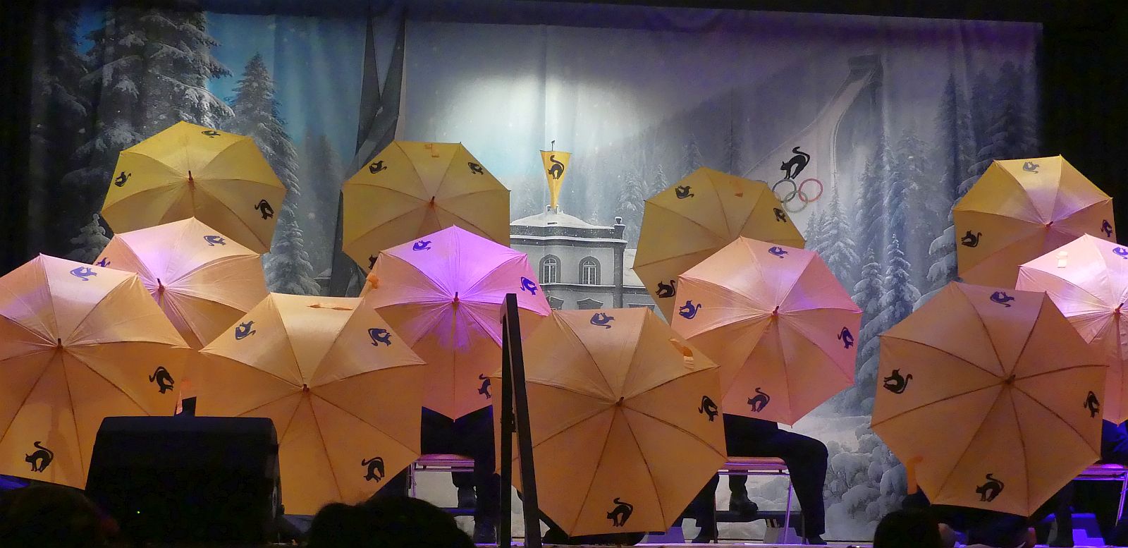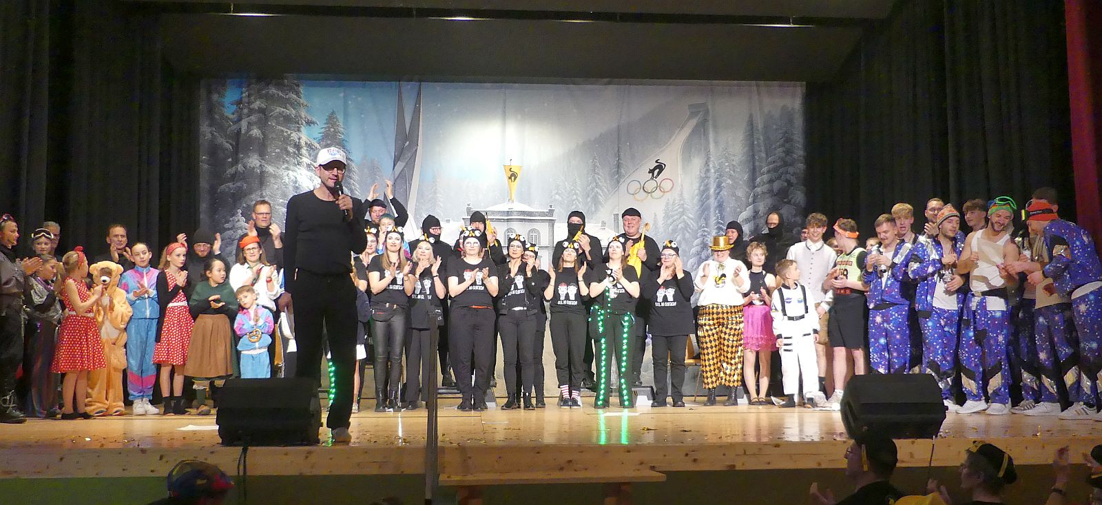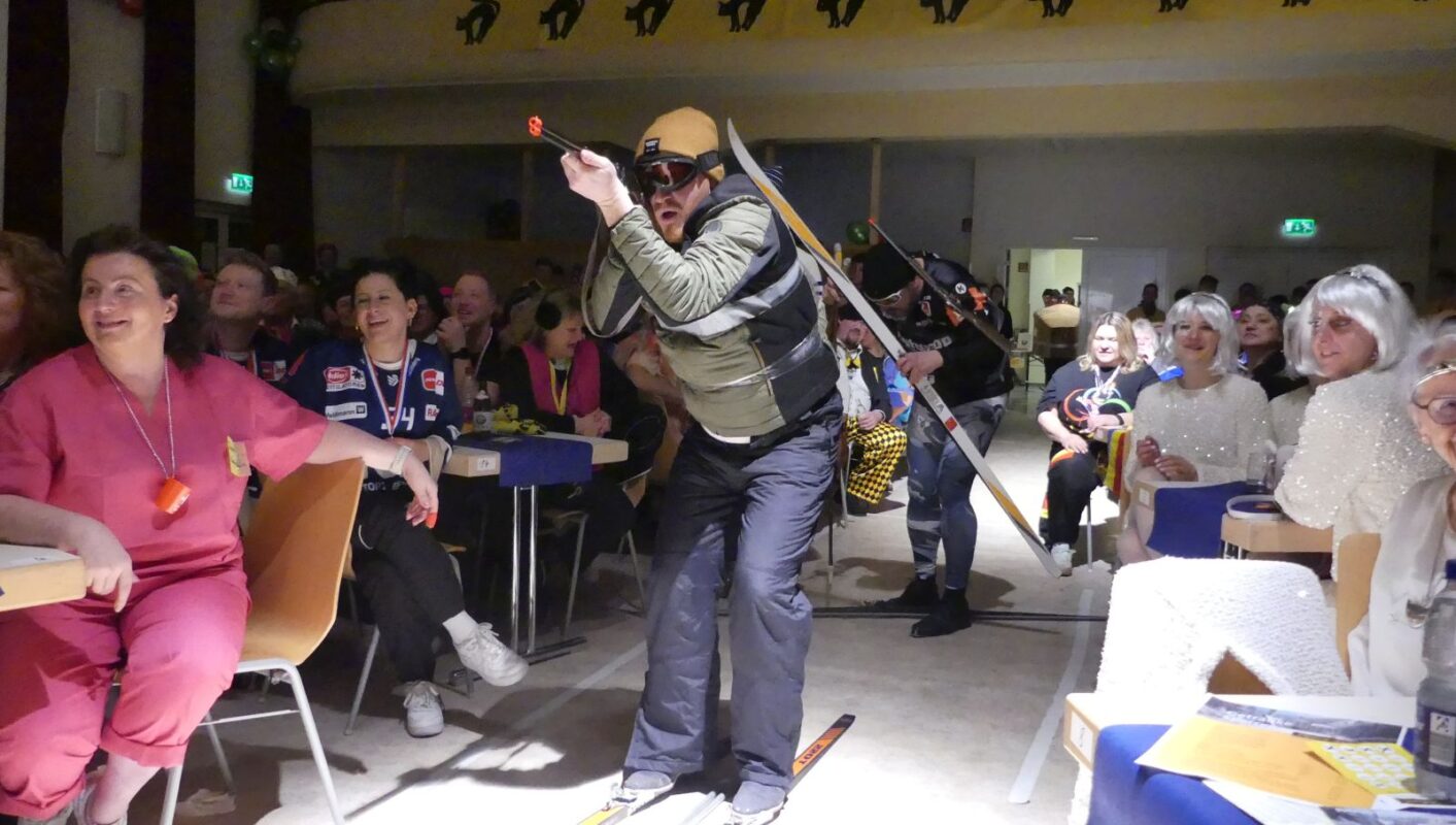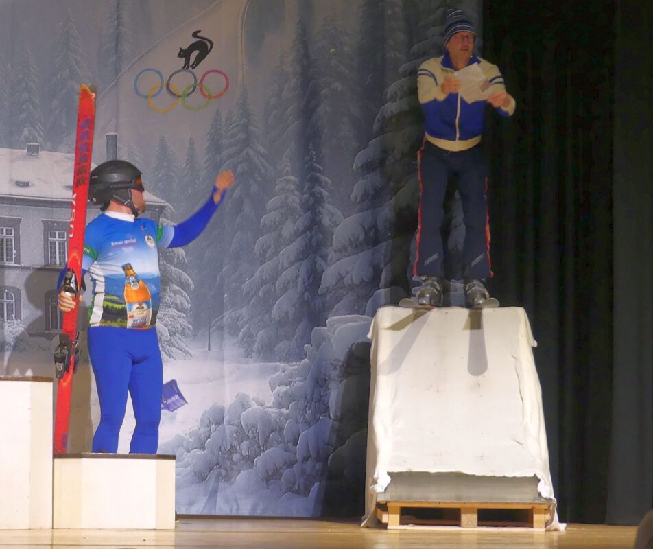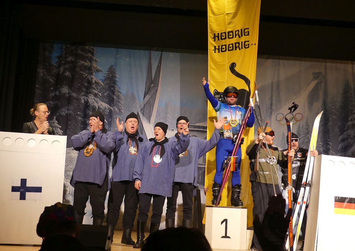 Anschließend hielten die verschiedenen Sportarten Einzug: von den Skispringern über ein Curling-Team, die Langläufer und Biathleten und den Viererbob bis hin zu einem Eiskunstlaufpaar. Sieger im interdisziplinären Wettkampf wurden die Skispringer vor den Biathleten und der Bobmannschaft Die Hoorig-Katz-Fahne und die Nationalhymne erklangen stilgerecht.