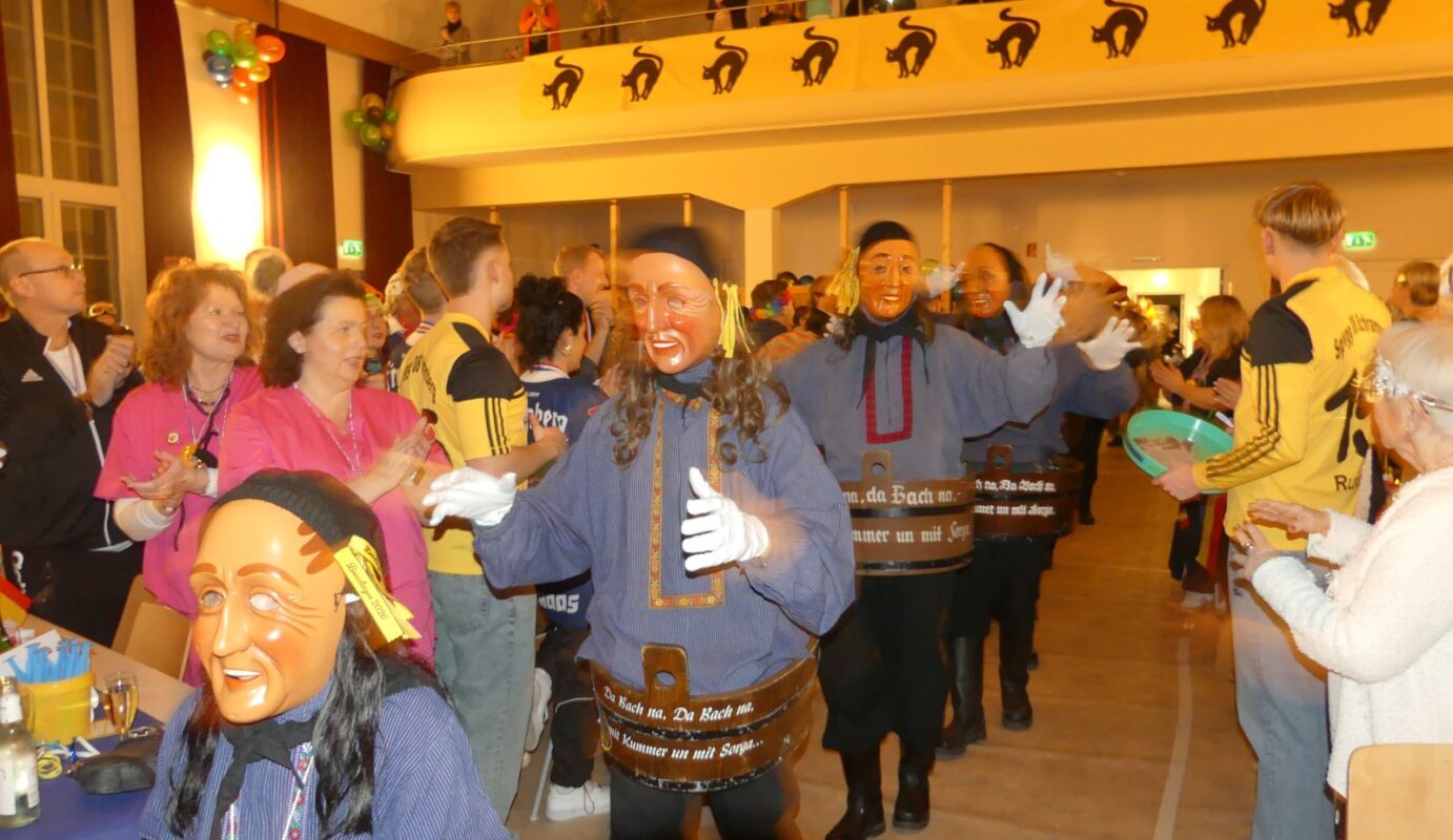 Mit einem von Daphi Finkbeiner einstudierten Regenschirmtanz des Elferrats endete das offizielle Programm. Dank ging an die SV 08er, die die Gäste bewirtet hatten, und an das THW für die Saalwache. Für Licht und Ton war Dennis Dieterle verantwortlich, in der Maske hatten Sabine Rapp und Frederik Armbruster gewirbelt. Achim Schaub sorgte im Hintergrund für den reibungslosen Ablauf.